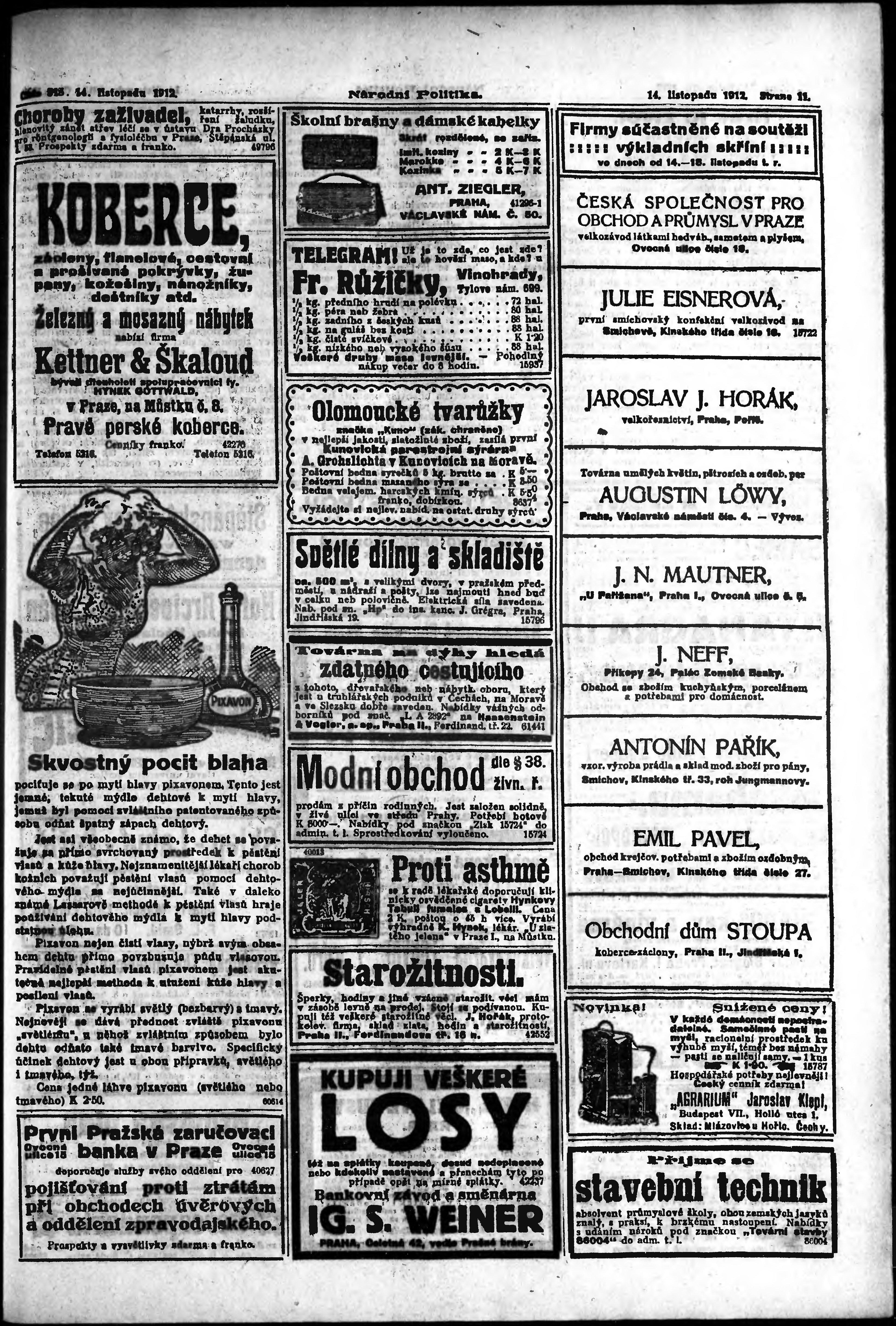 * Datum vydání výtisku: 14.11.1912 Číslo výtisku: 315 Poznámky k výtisku: ranní vydání;