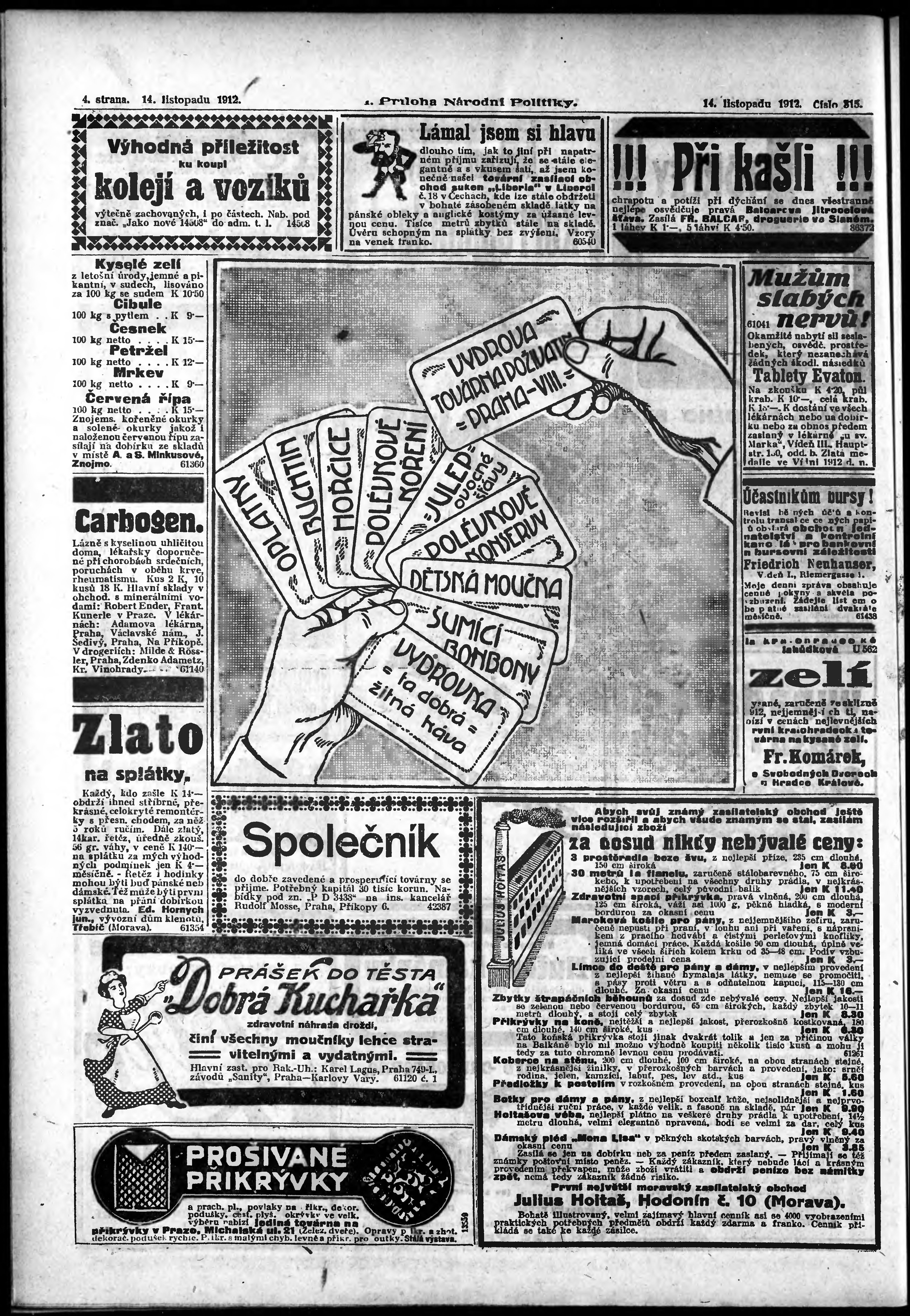 * Datum vydání výtisku: 14.11.1912 Číslo výtisku: 315 Typ výtisku: příloha Poznámky k výtisku: 1. příloha;