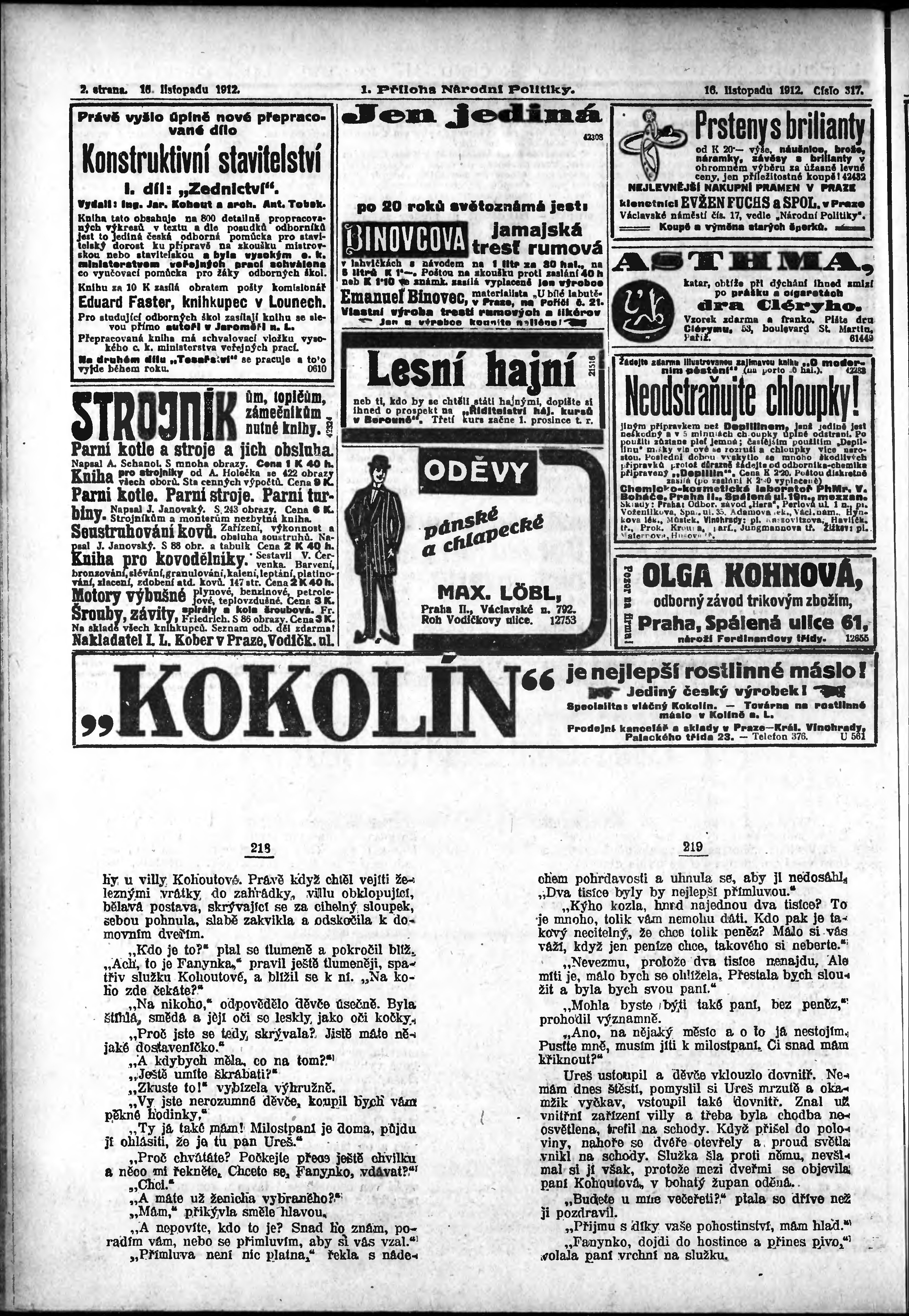 * Datum vydání výtisku: 16.11.1912 Číslo výtisku: 317 Typ výtisku: příloha Poznámky k výtisku: 1. příloha;