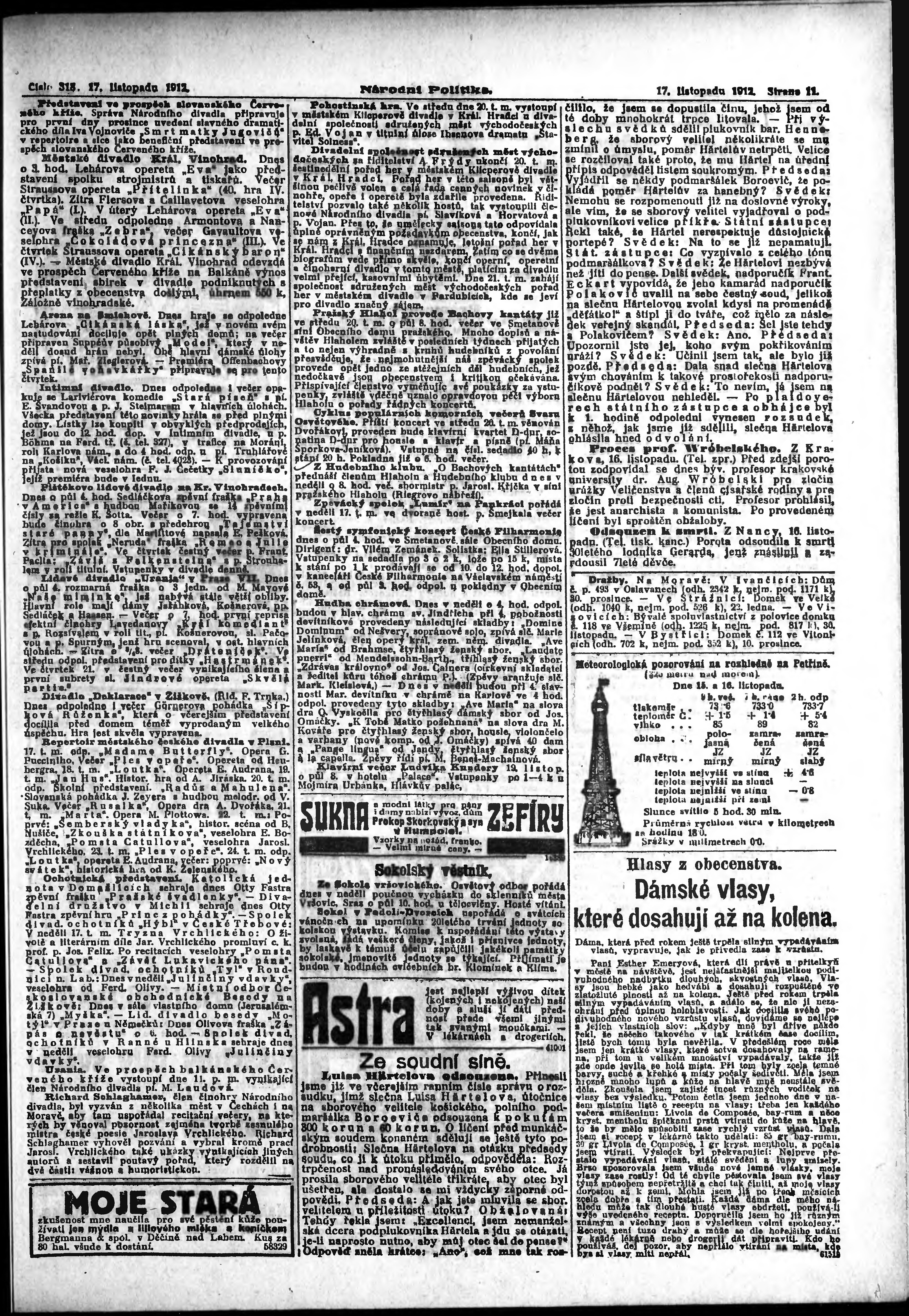* Datum vydání výtisku: 17.11.1912 Číslo výtisku: 318 Poznámky k výtisku: ranní vydání;