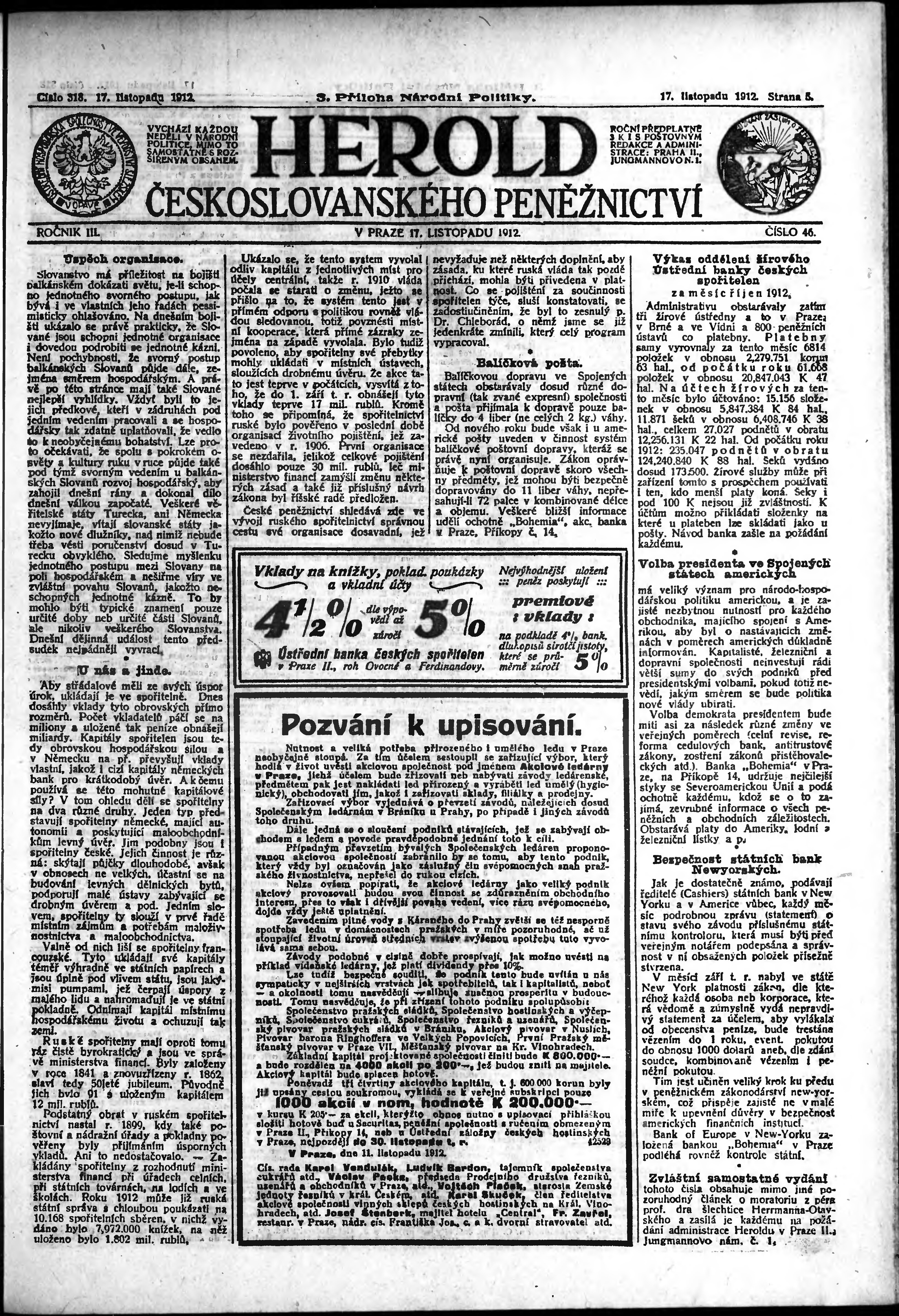 Poznámky k výtisku: 3. příloha; obsahuje č. 46 Herold českoslovanského peněžnictví;