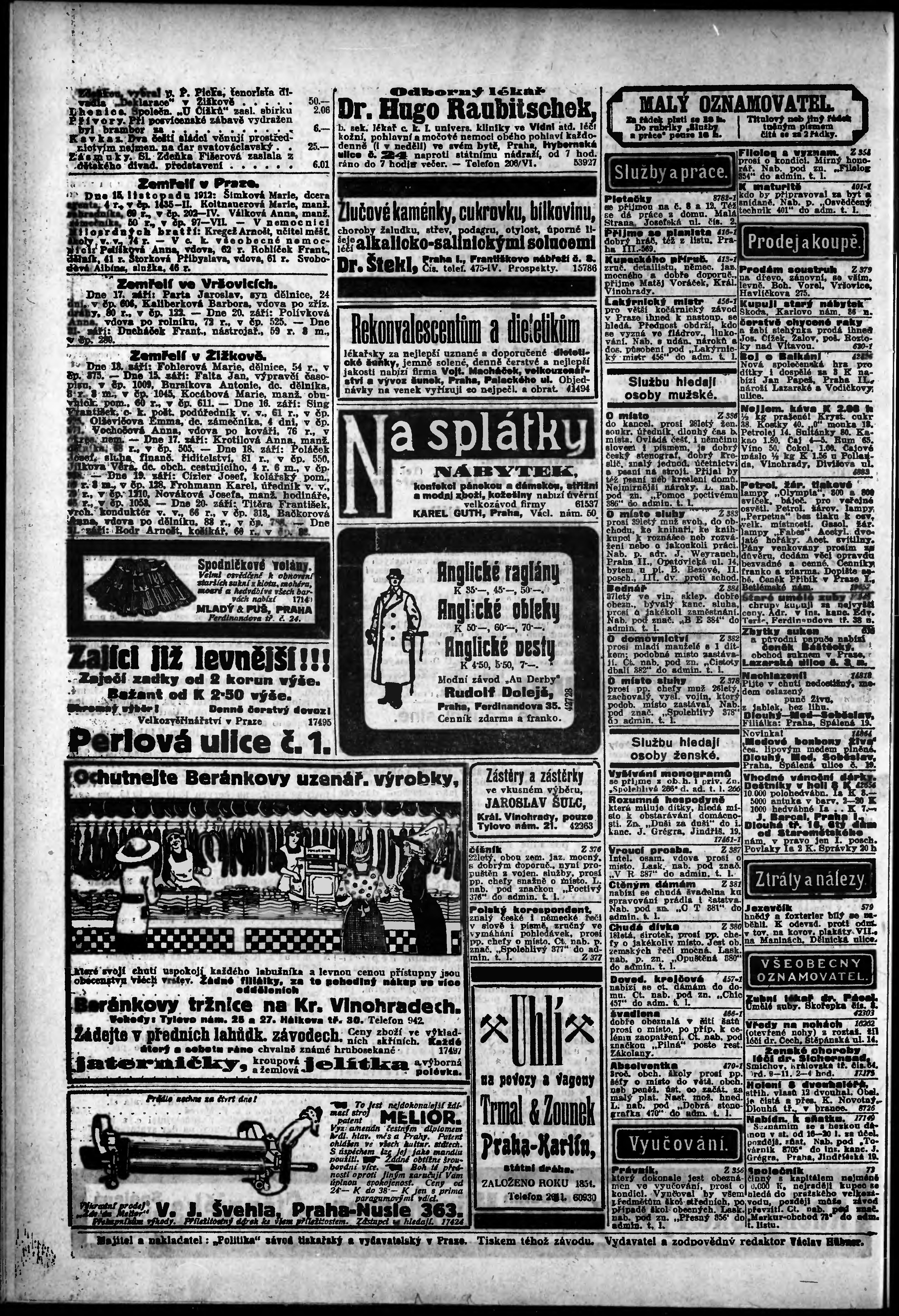 * Datum vydání výtisku: 21.11.1912 Číslo výtisku: 322 Poznámky k výtisku: odpolední vydání;