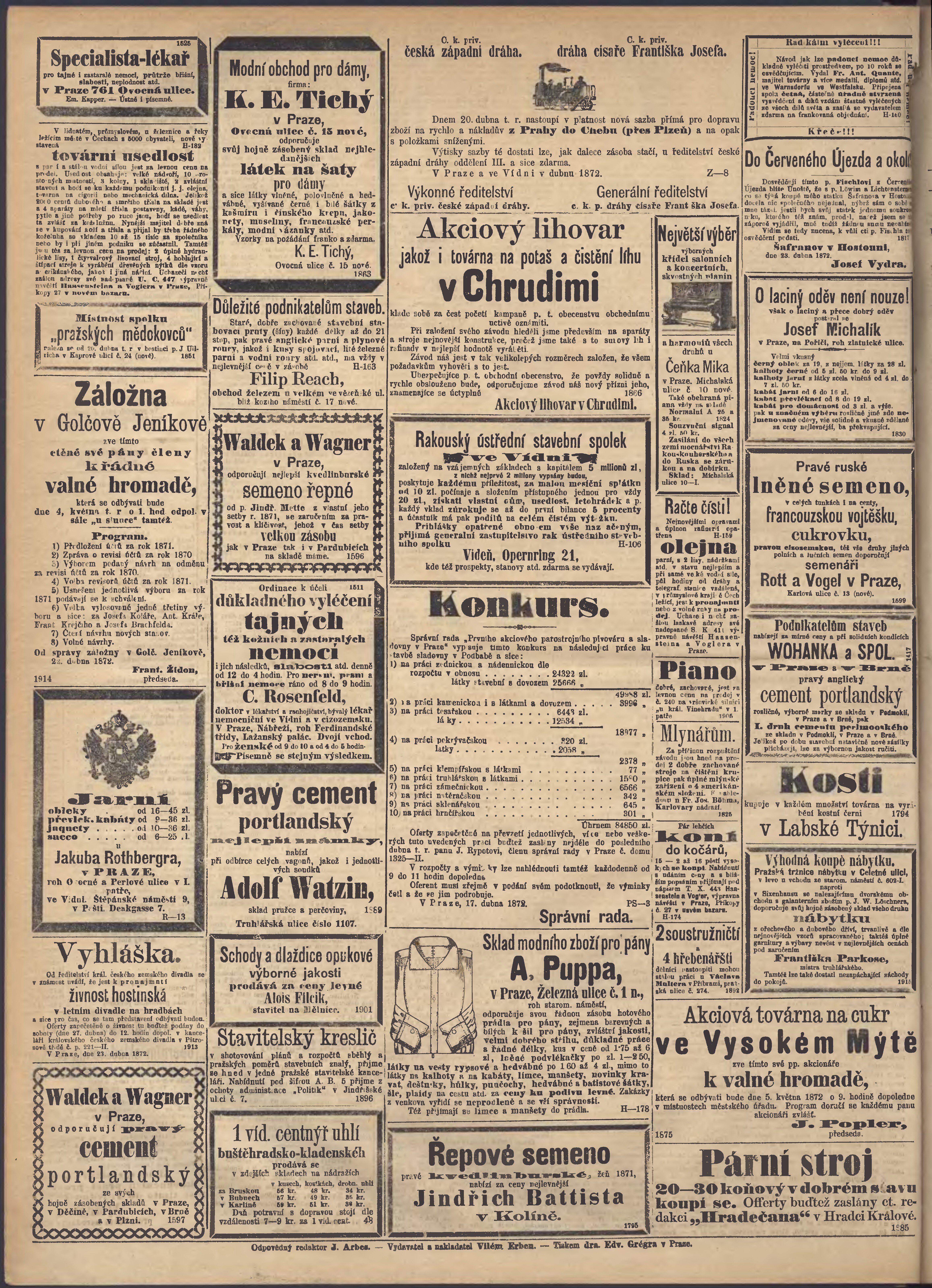 * Datum vydání výtisku: 25.4.1872 Číslo výtisku: 113