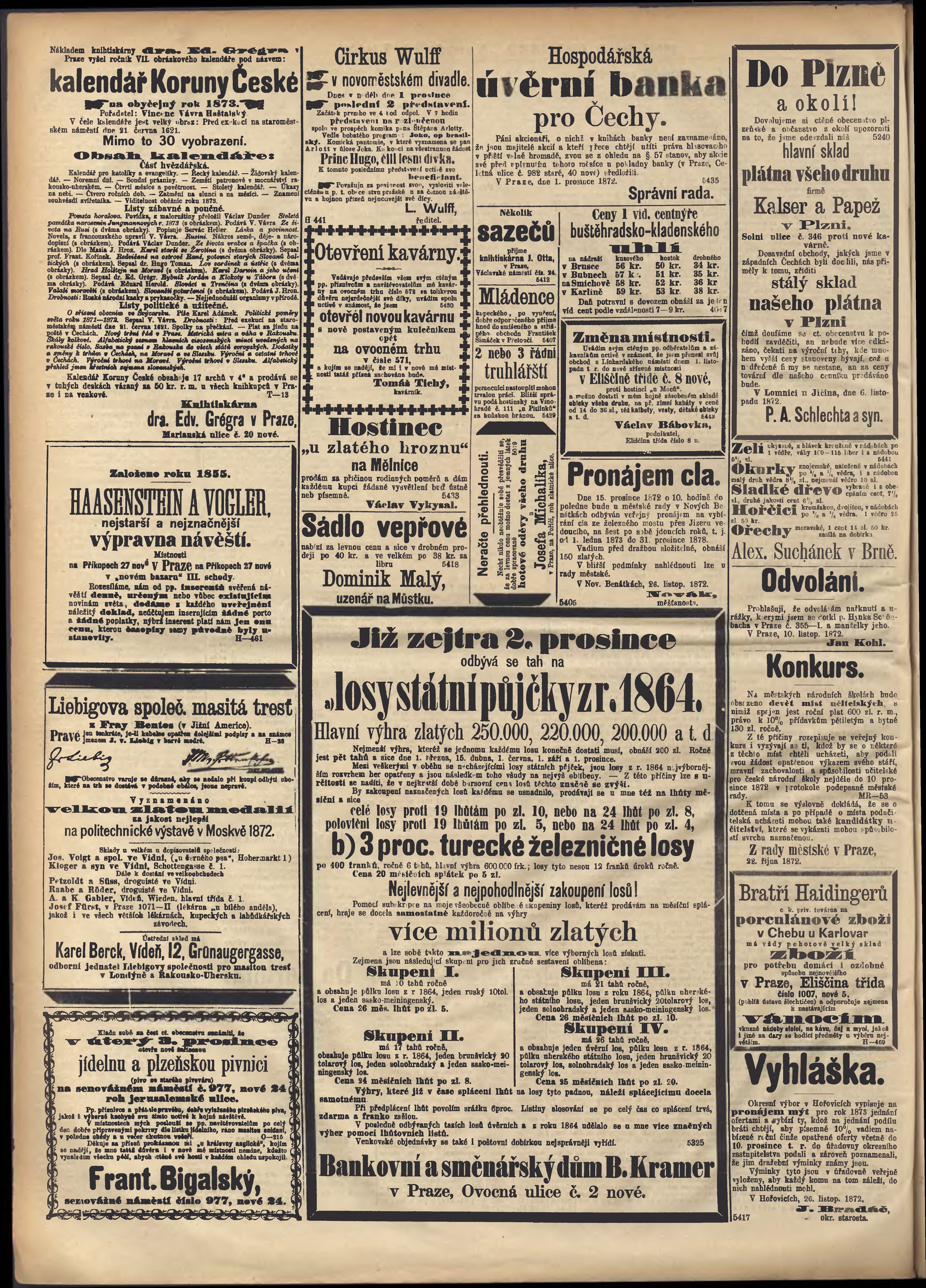 * Datum vydání výtisku: 1.12.1872 Číslo výtisku: 332