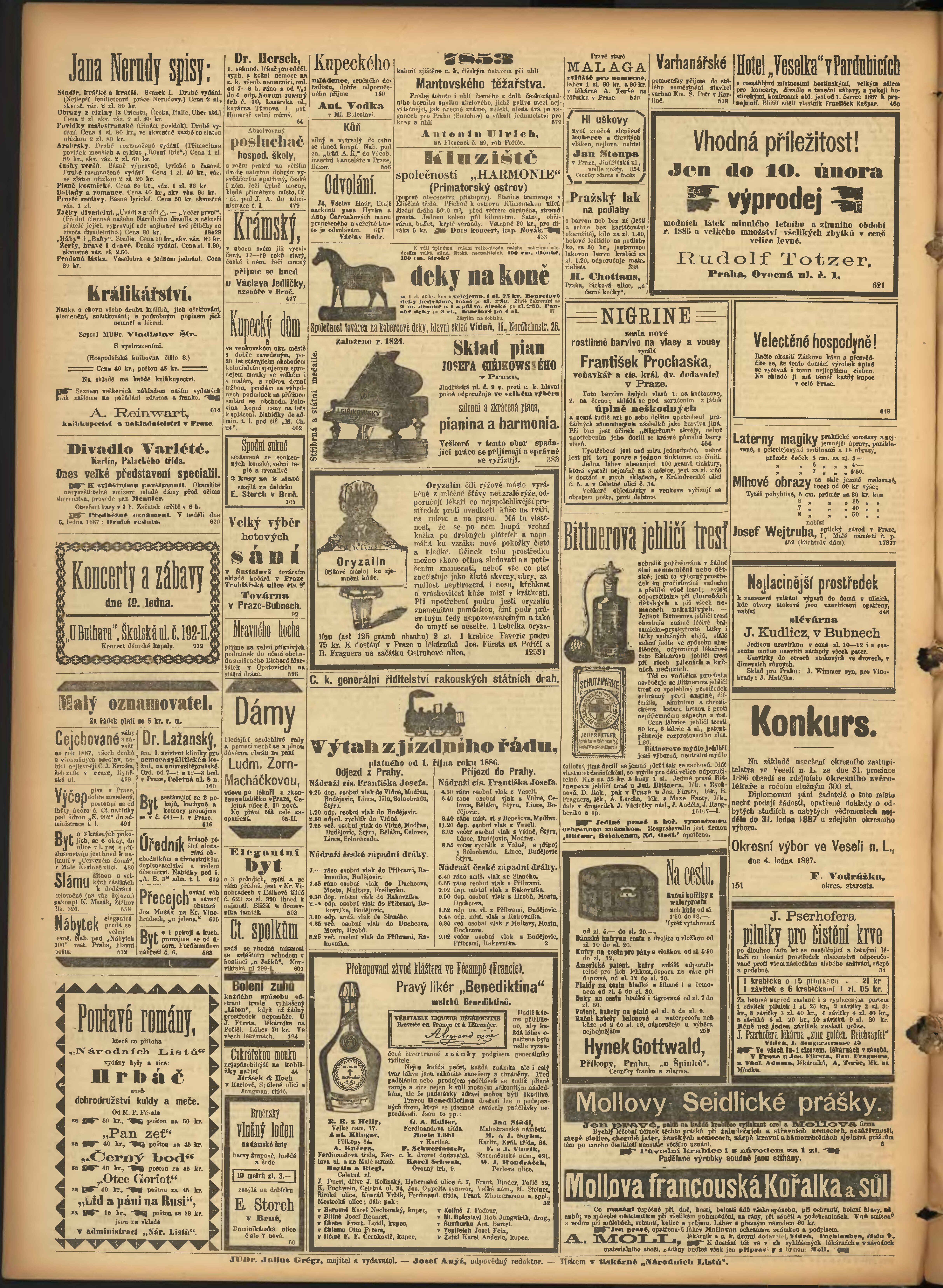 * Datum vydání výtisku: 10.1.1887 Číslo výtisku: 9