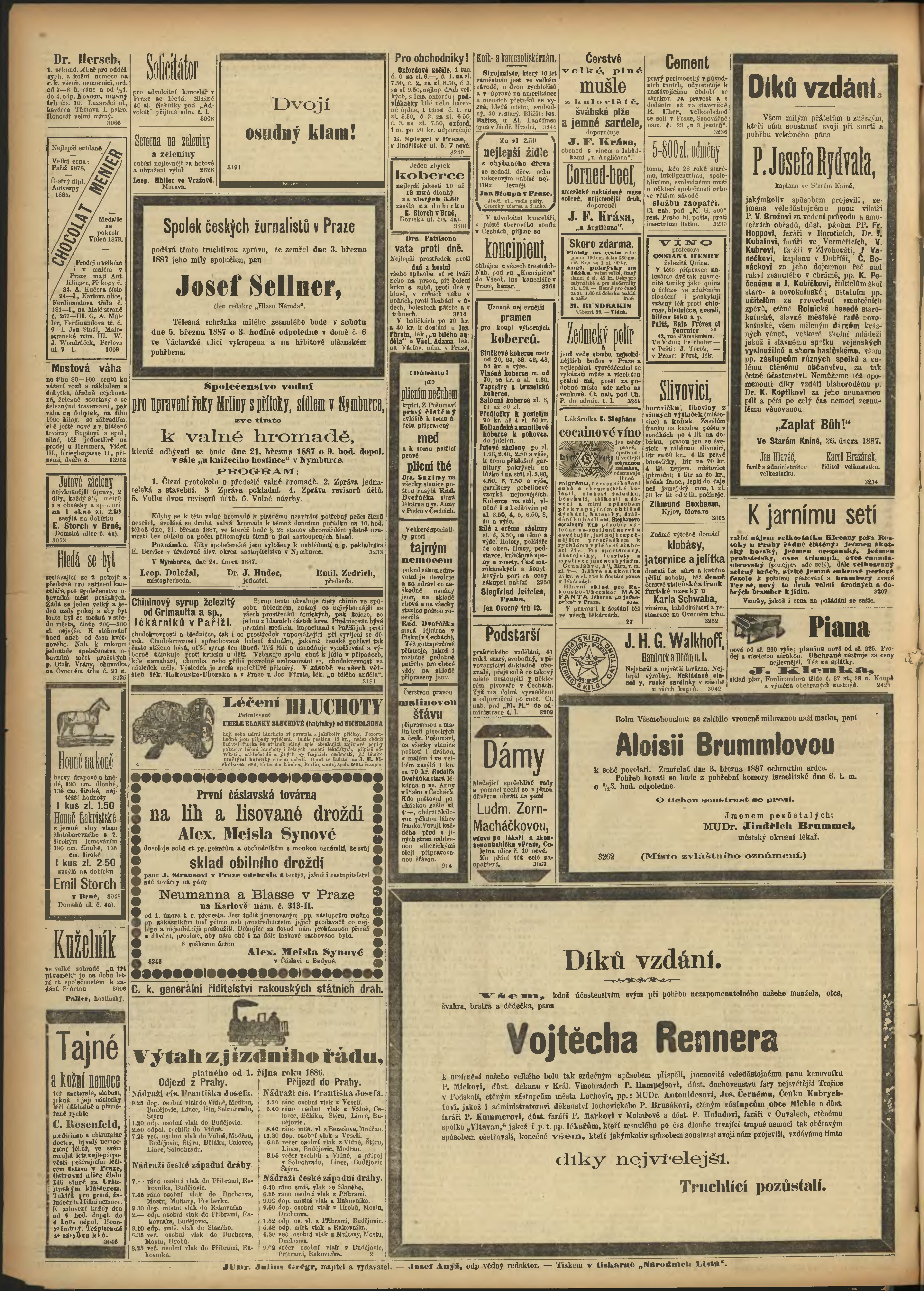 * Datum vydání výtisku: 4.3.1887 Číslo výtisku: 62