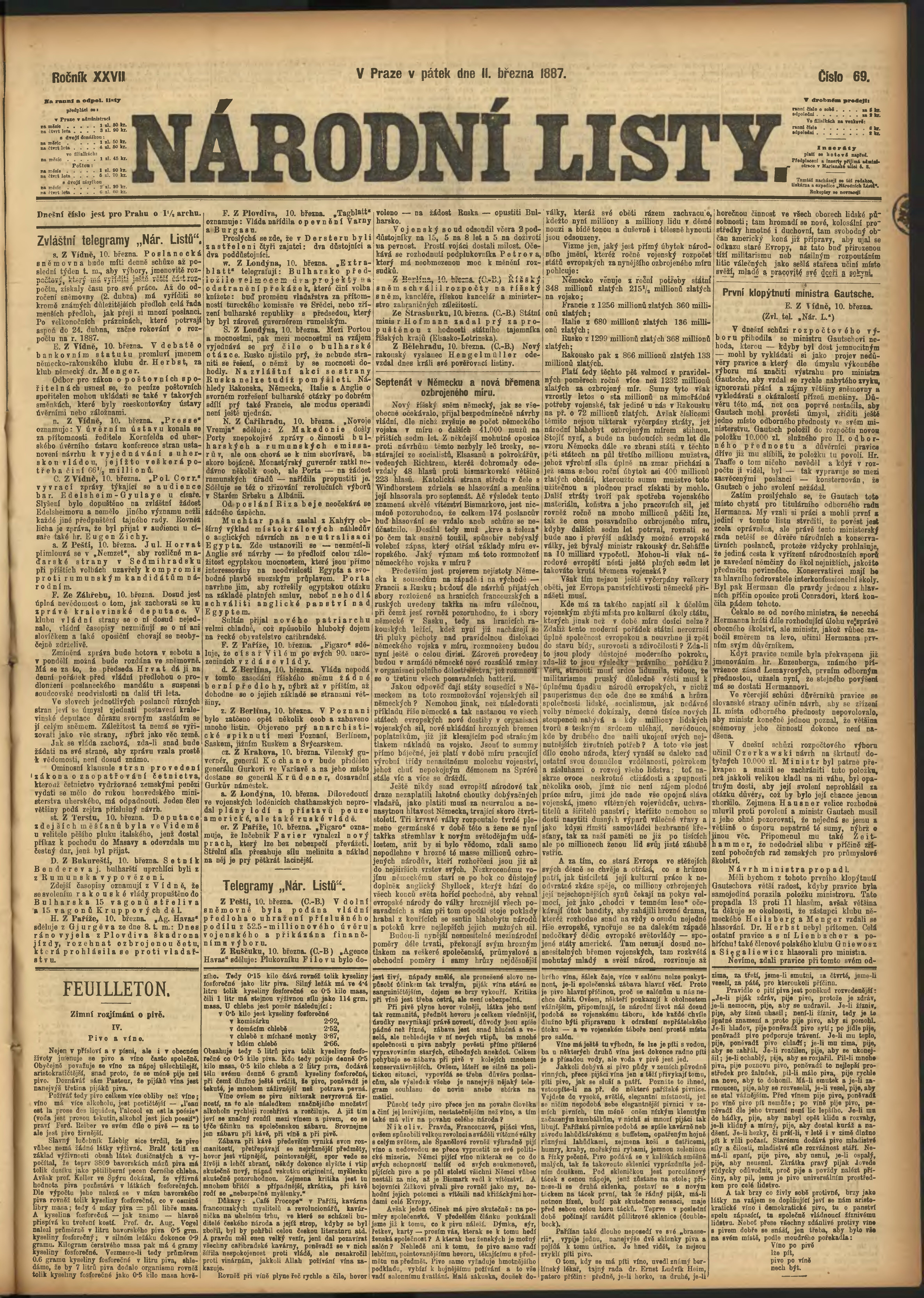 * Datum vydání výtisku: 11.3.1887 Číslo výtisku: 69