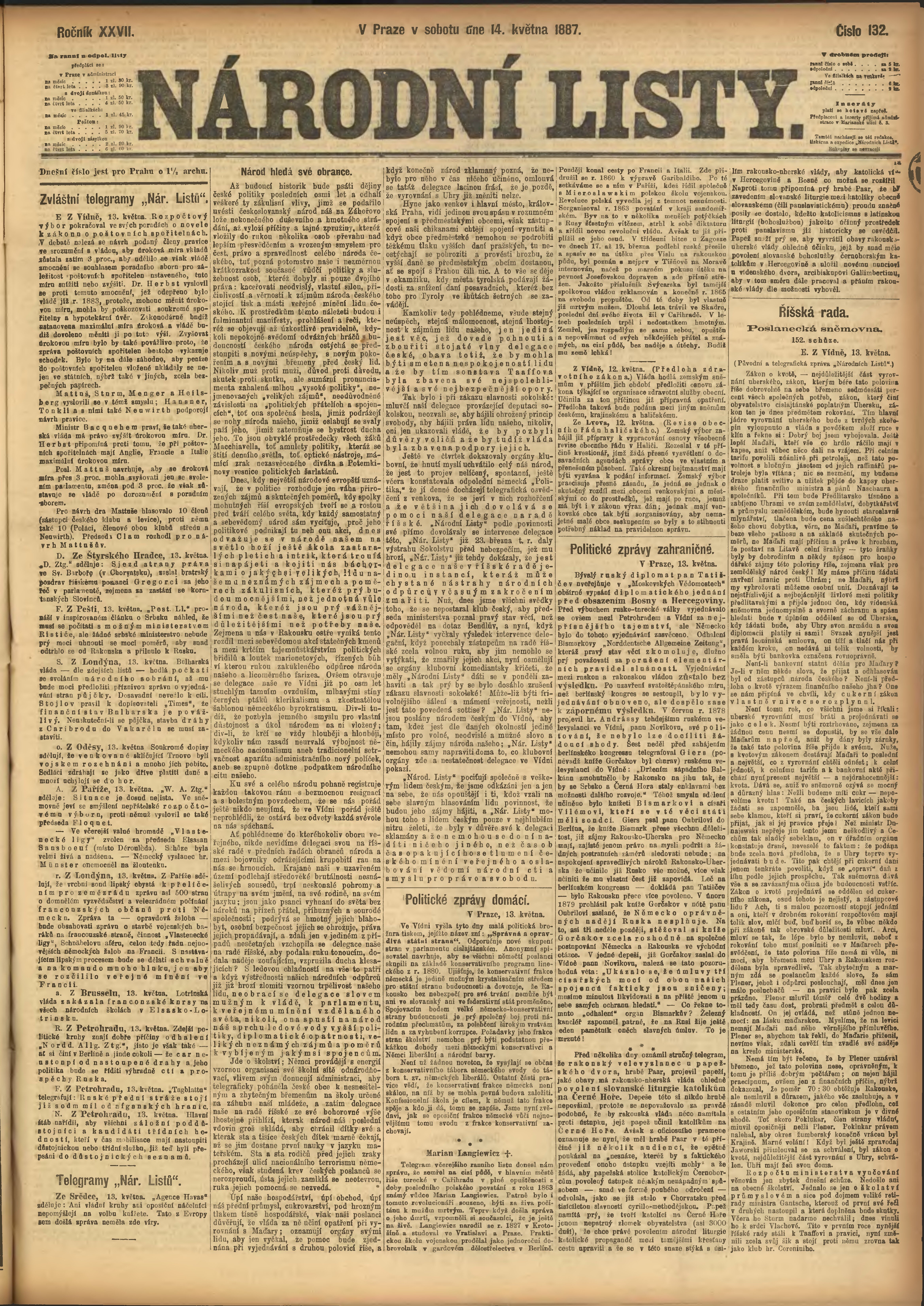 * Datum vydání výtisku: 14.5.1887 Číslo výtisku: 132