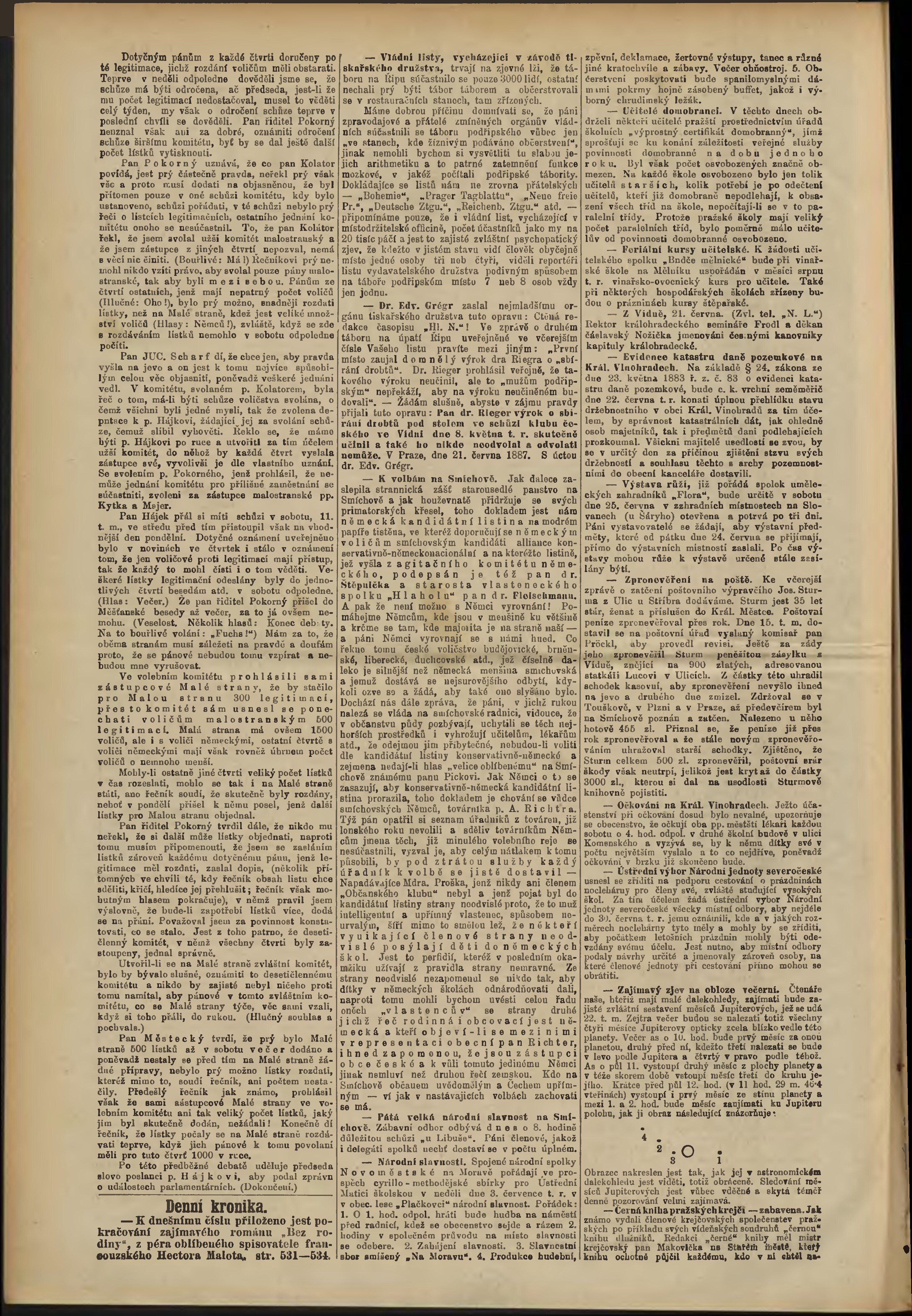 * Datum vydání výtisku: 21.6.1887 Číslo výtisku: 168 Poznámky k výtisku: odpolední vydání;