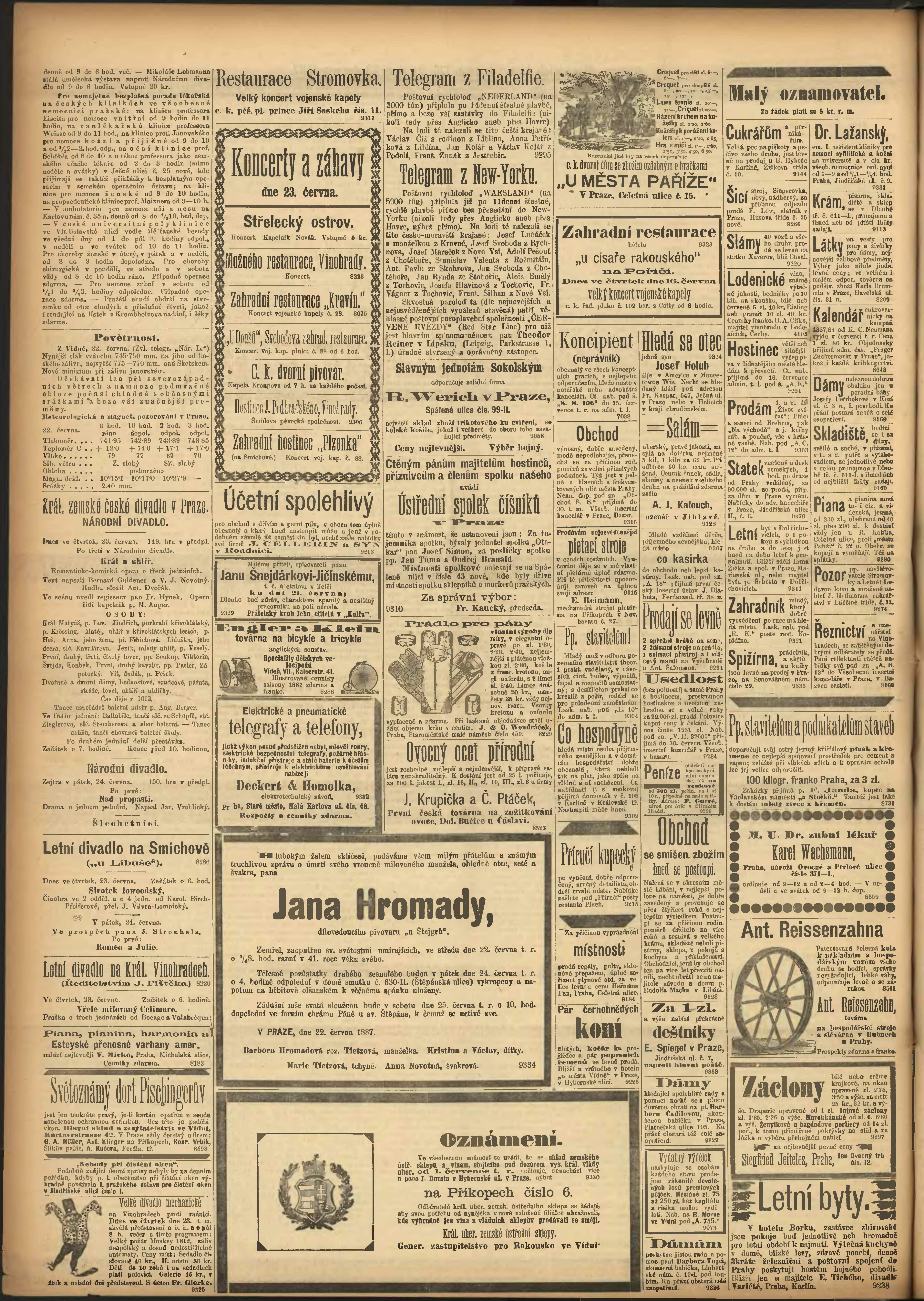 * Datum vydání výtisku: 23.6.1887 Číslo výtisku: 170