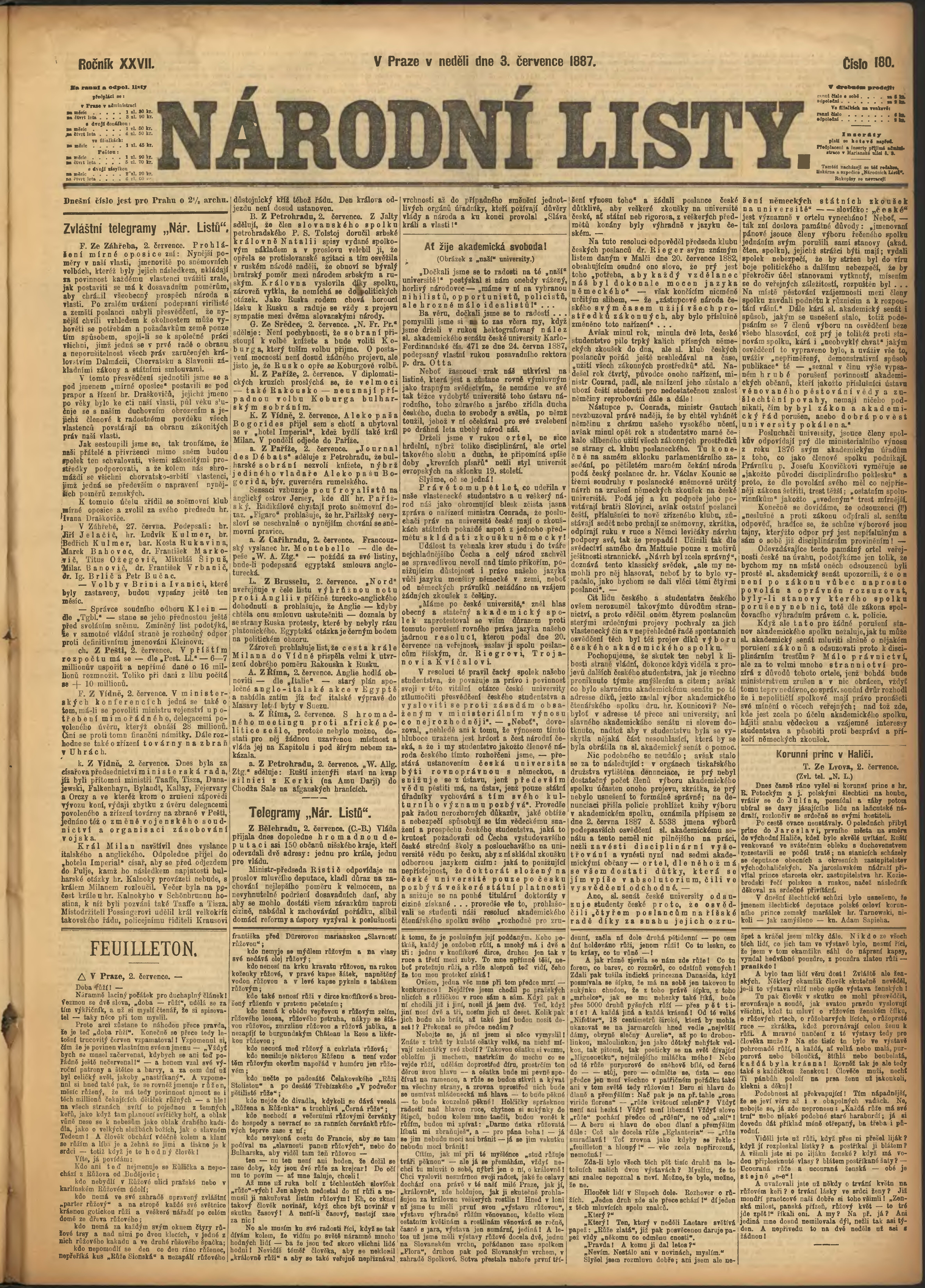 * Datum vydání výtisku: 3.7.1887 Číslo výtisku: 180