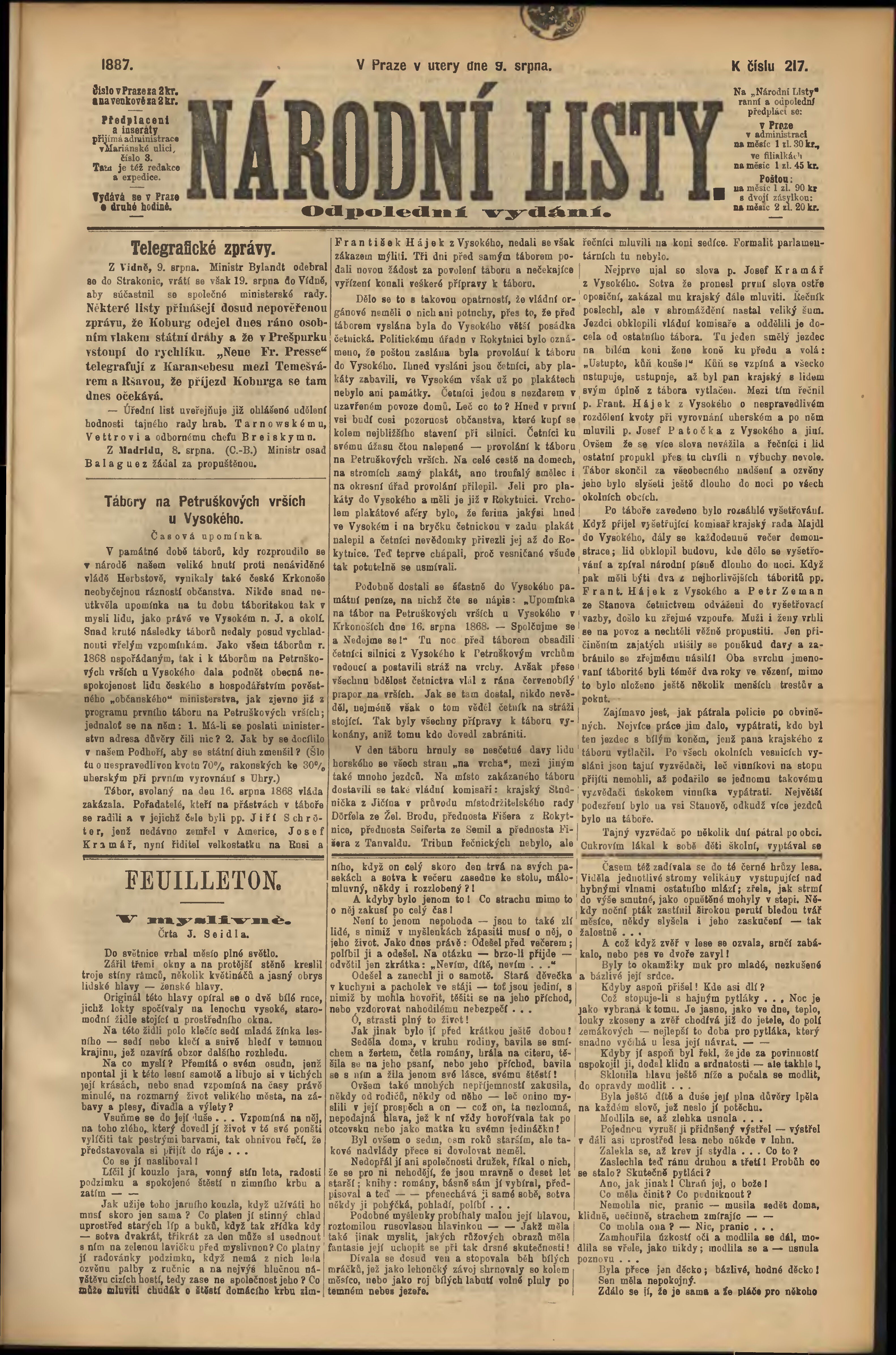 * Datum vydání výtisku: 9.8.1887 Číslo výtisku: 217 Poznámky k výtisku: odpolední vydání;