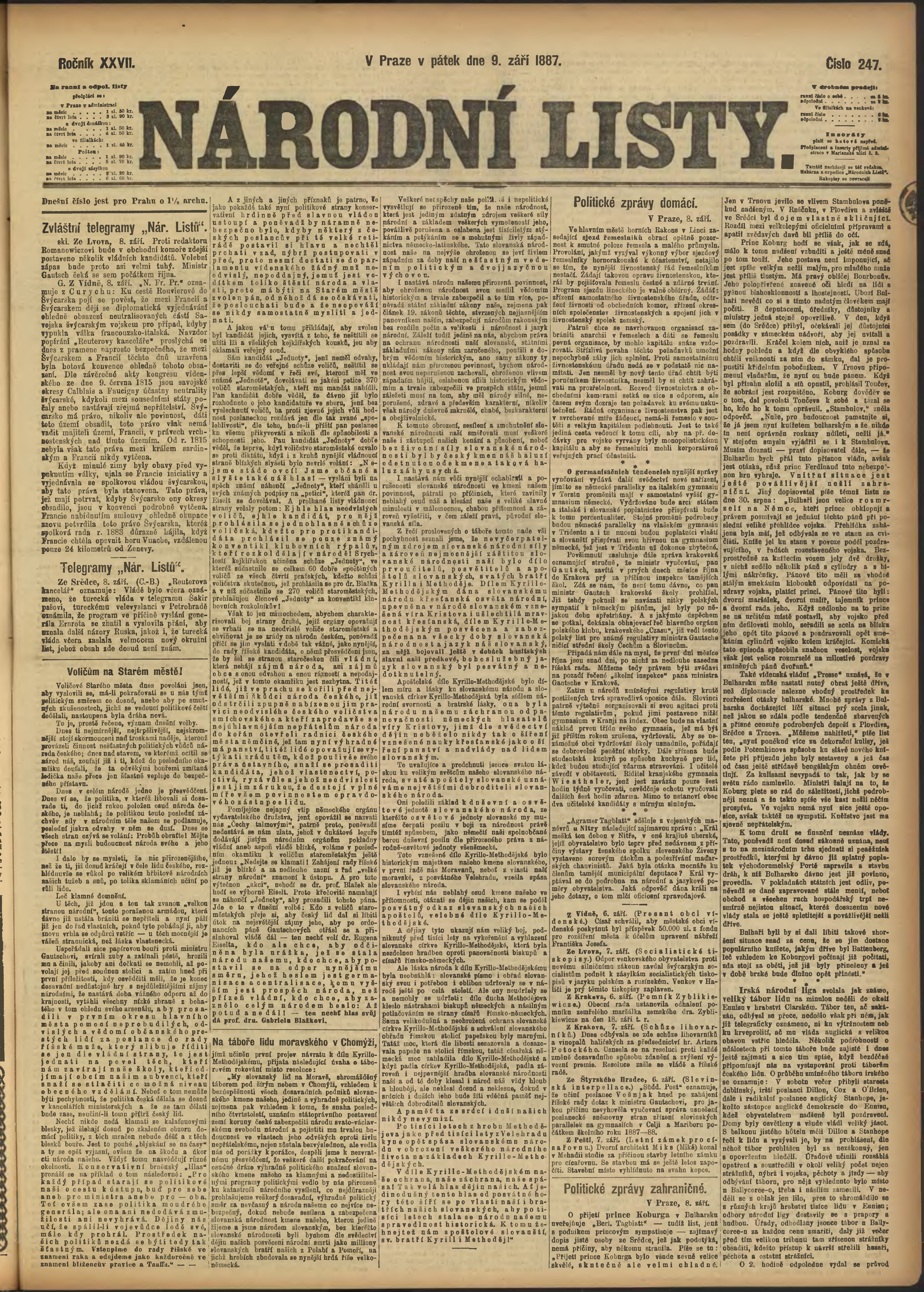 * Datum vydání výtisku: 9.9.1887 Číslo výtisku: 247