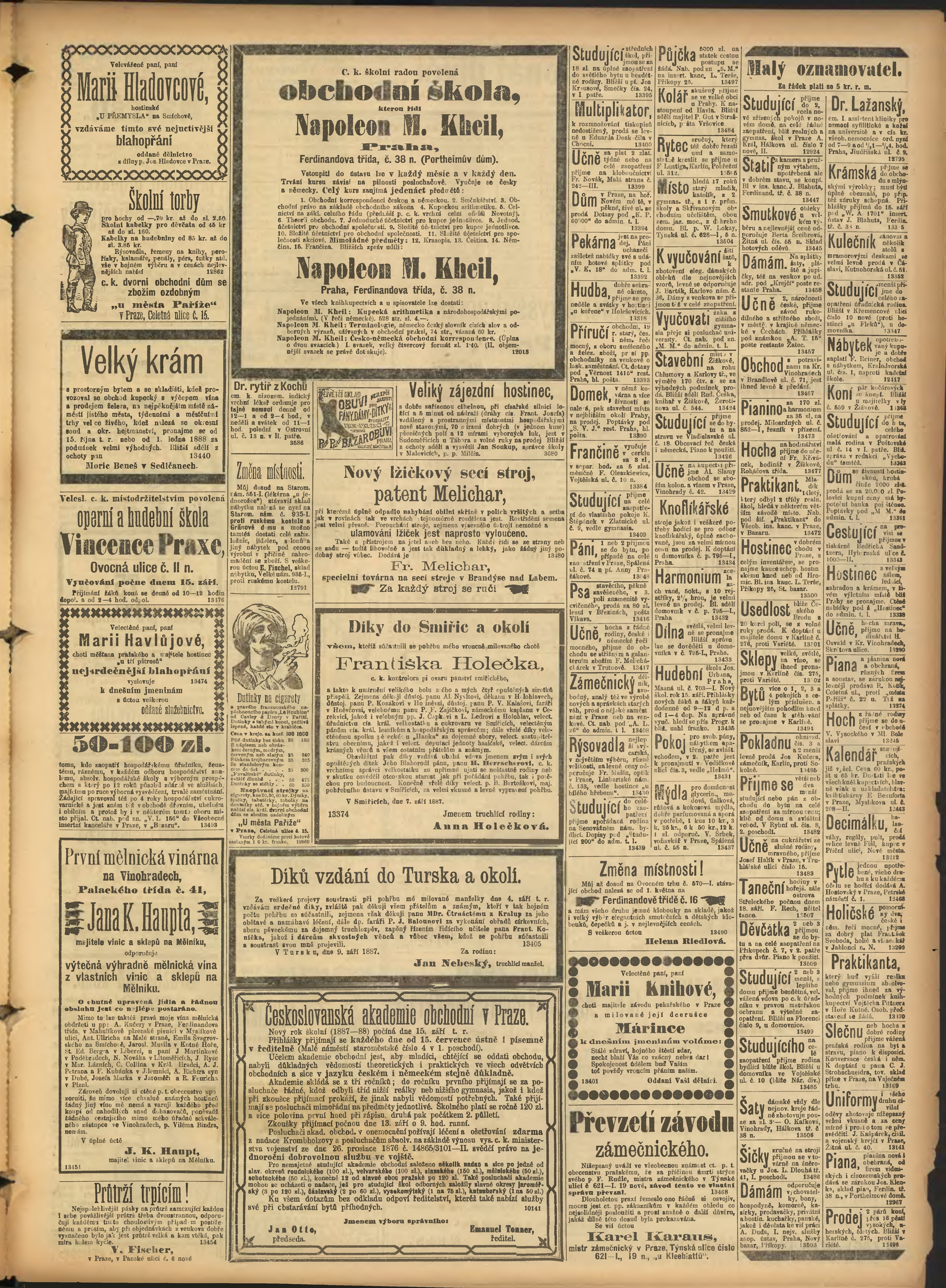 * Datum vydání výtisku: 11.9.1887 Číslo výtisku: 249