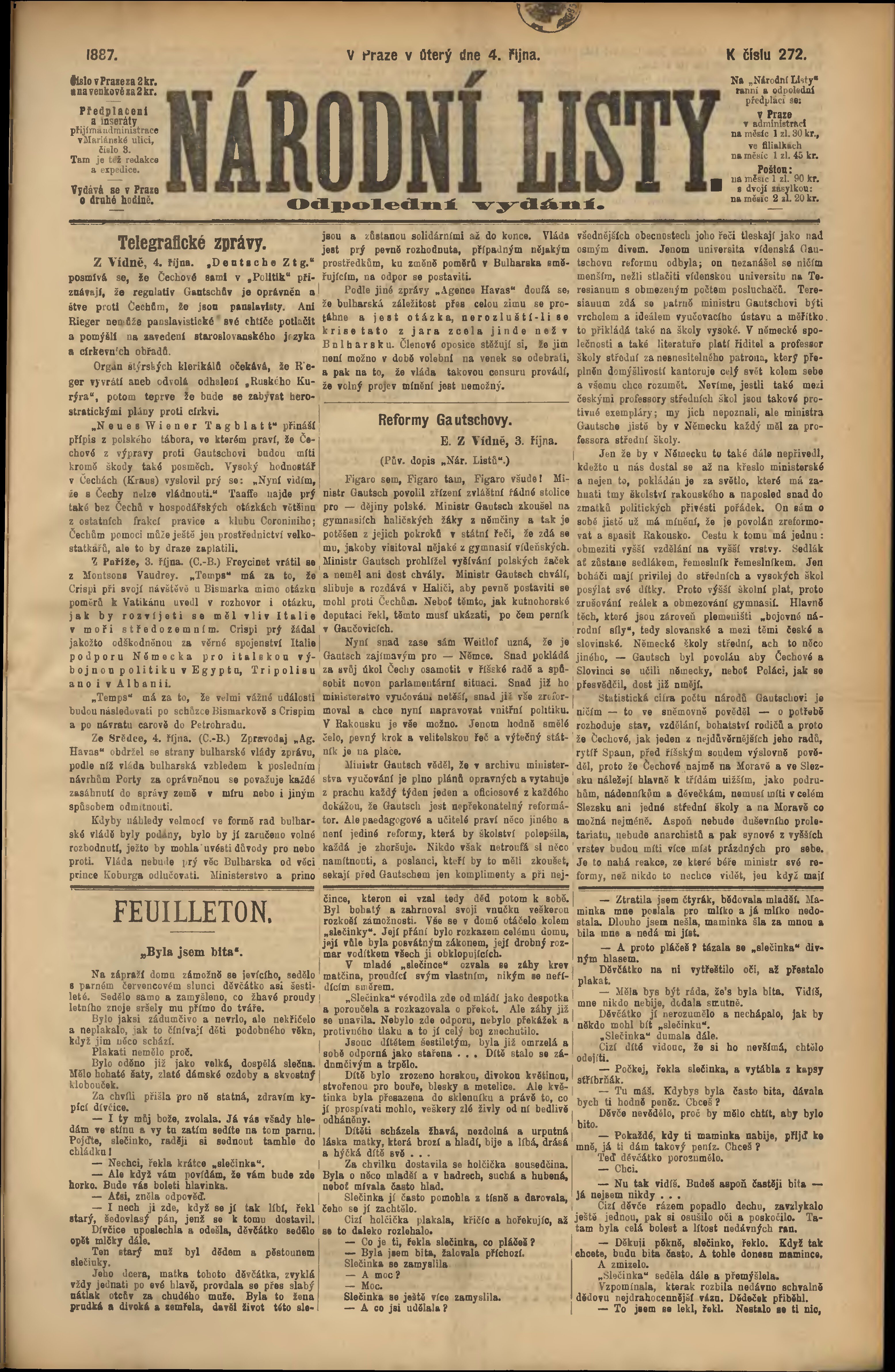 * Datum vydání výtisku: 4.10.1887 Číslo výtisku: 272 Poznámky k výtisku: odpolední vydání;
