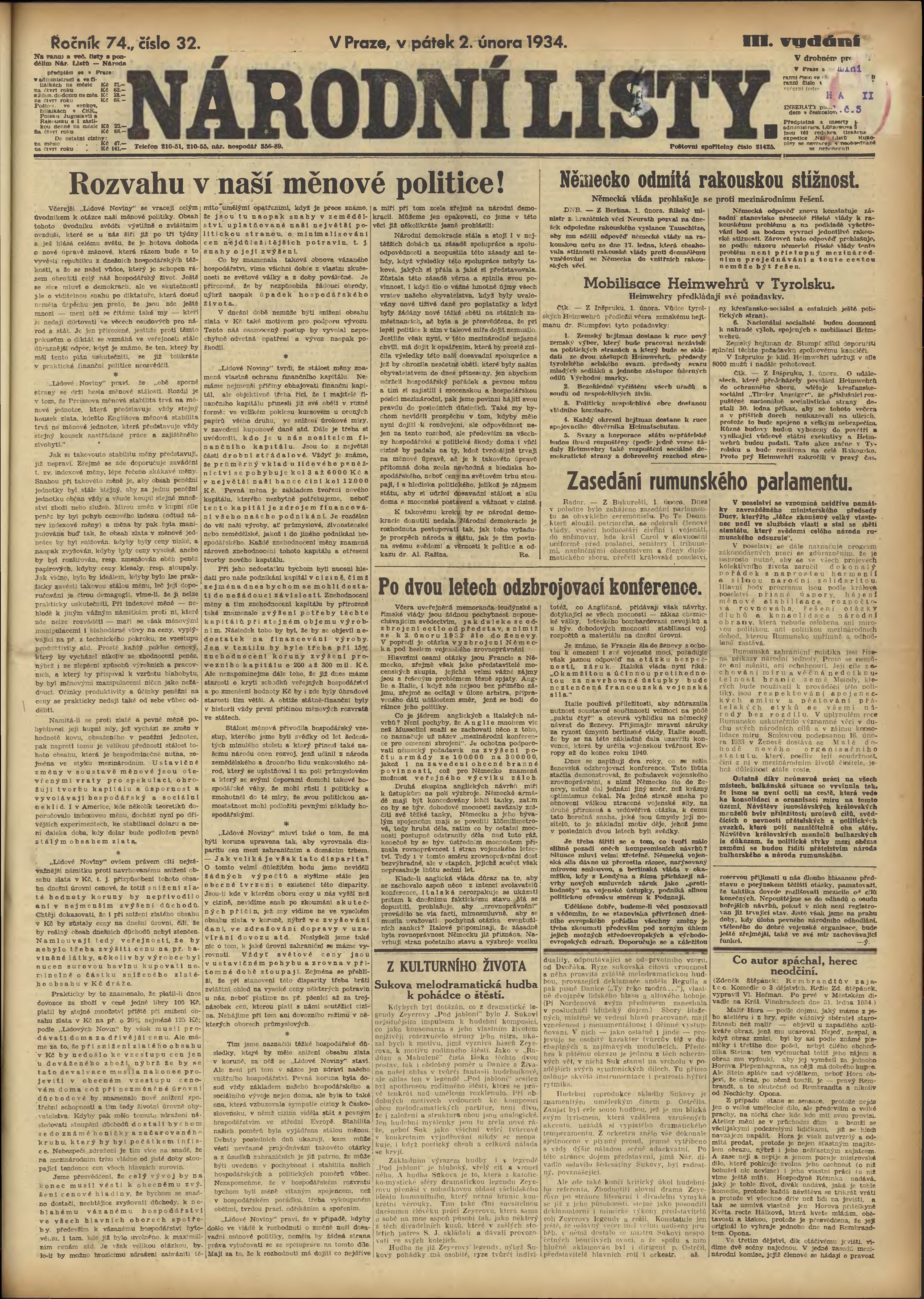 * Datum vydání výtisku: 2.2.1934 Číslo výtisku: 32 Poznámky k výtisku: 3. vydání;
