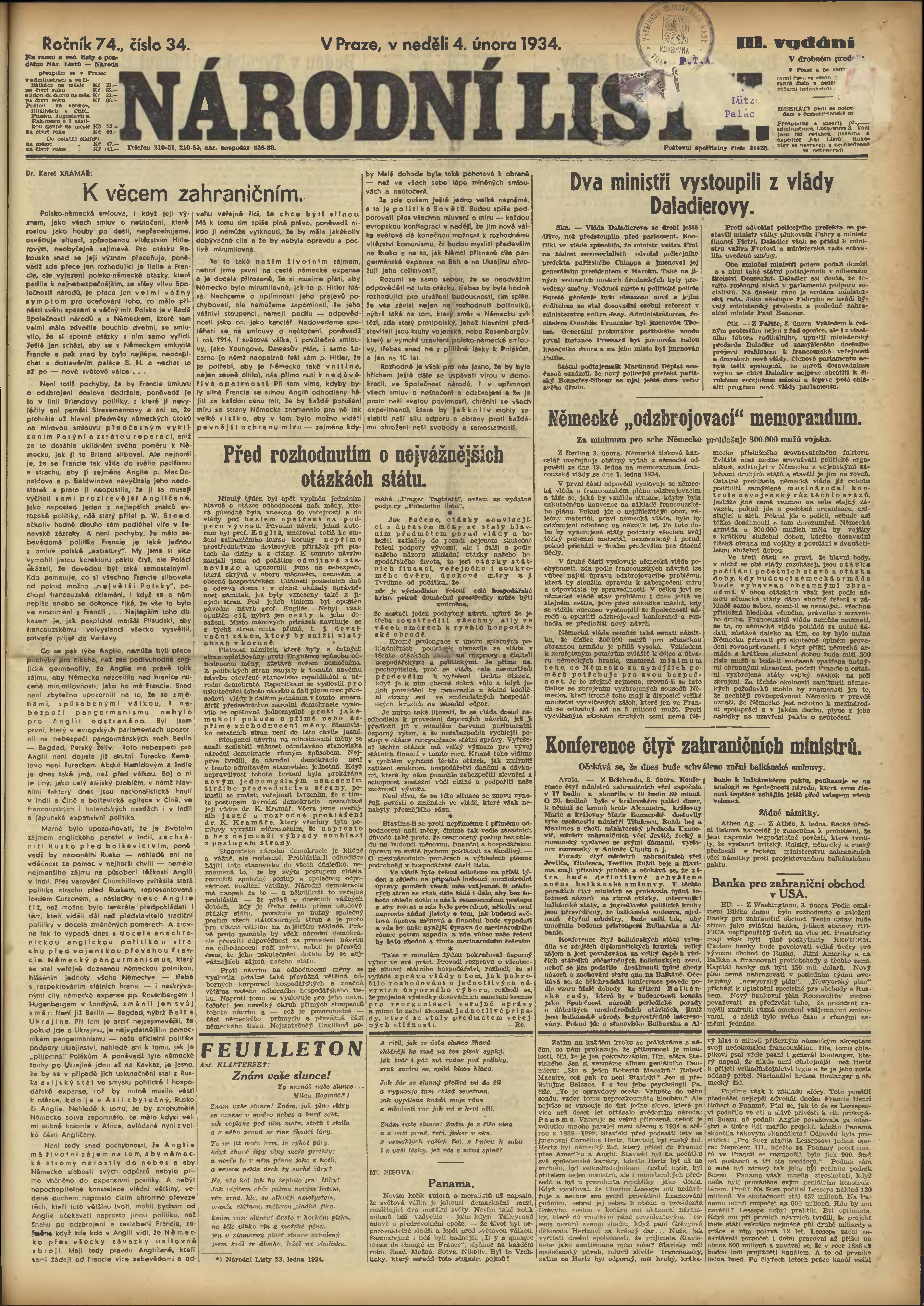 * Datum vydání ročníku: 1934 Číslo ročníku: 74