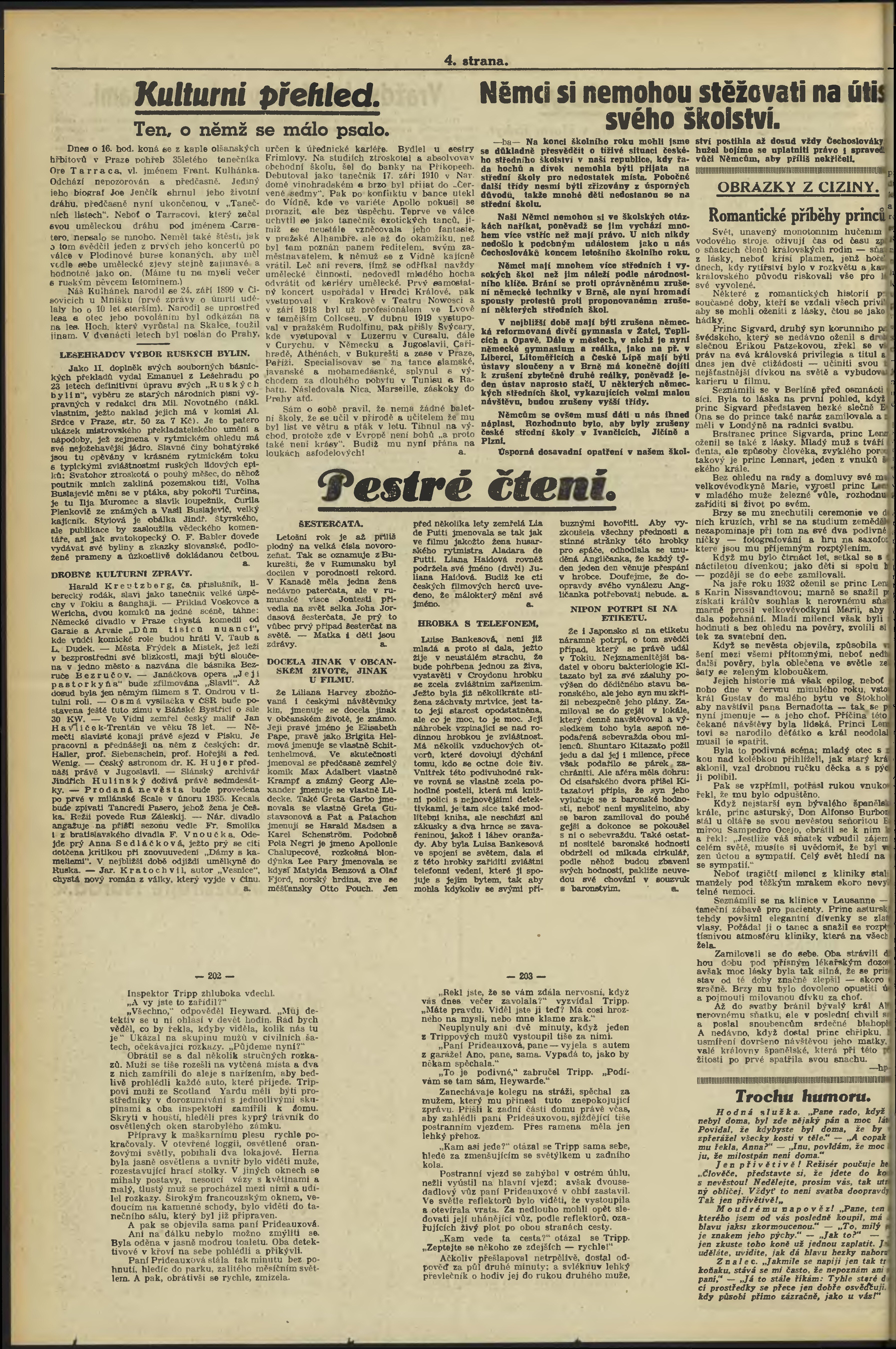* Datum vydání výtisku: 26.7.1934 Číslo výtisku: 143 Poznámky k výtisku: ranní vydání; 1. vydání;