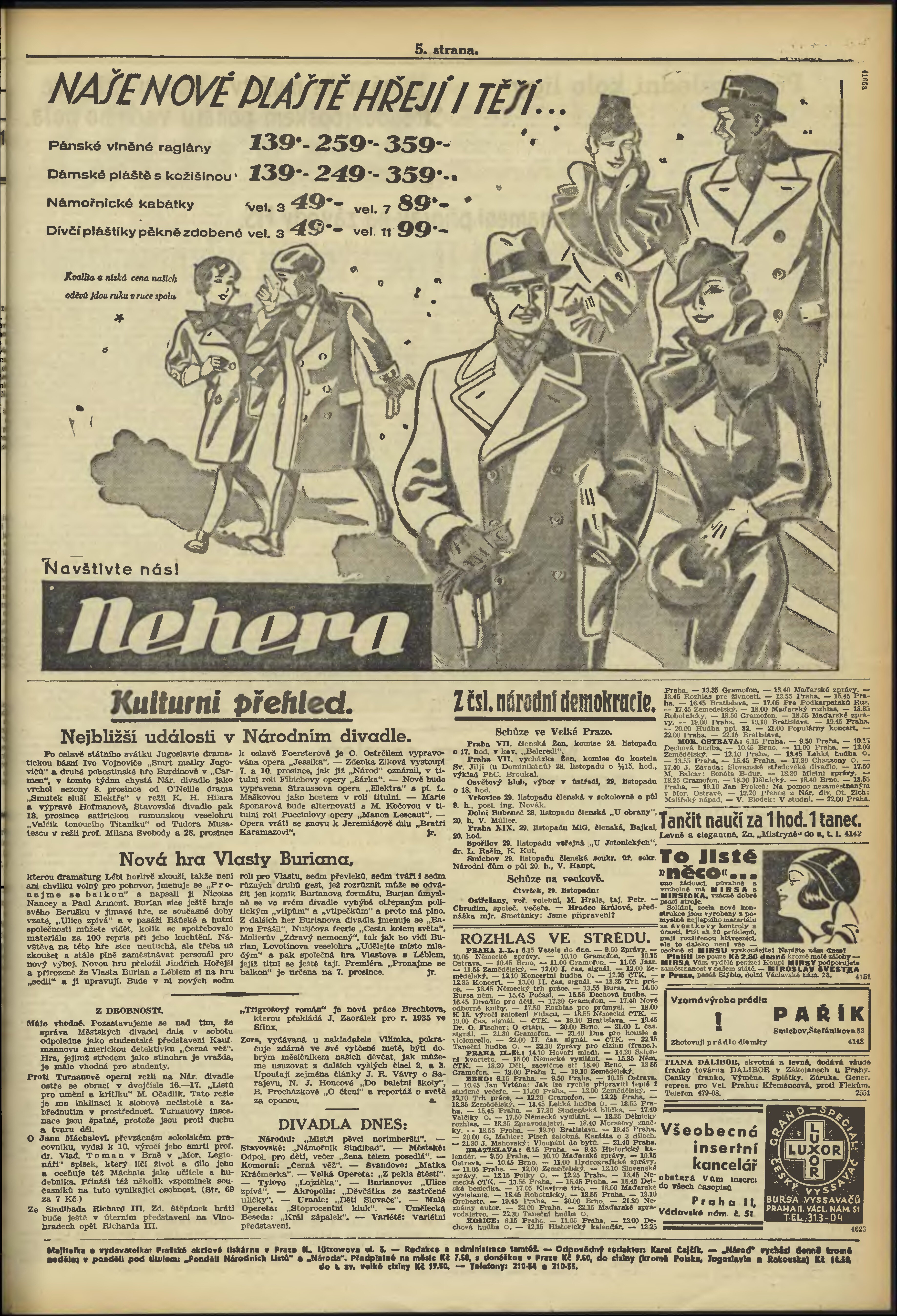 * Datum vydání výtisku: 28.11.1934 Číslo výtisku: 232 Poznámky k výtisku: ranní vydání; 1. vydání; po konfiskaci nové opravené vydání;