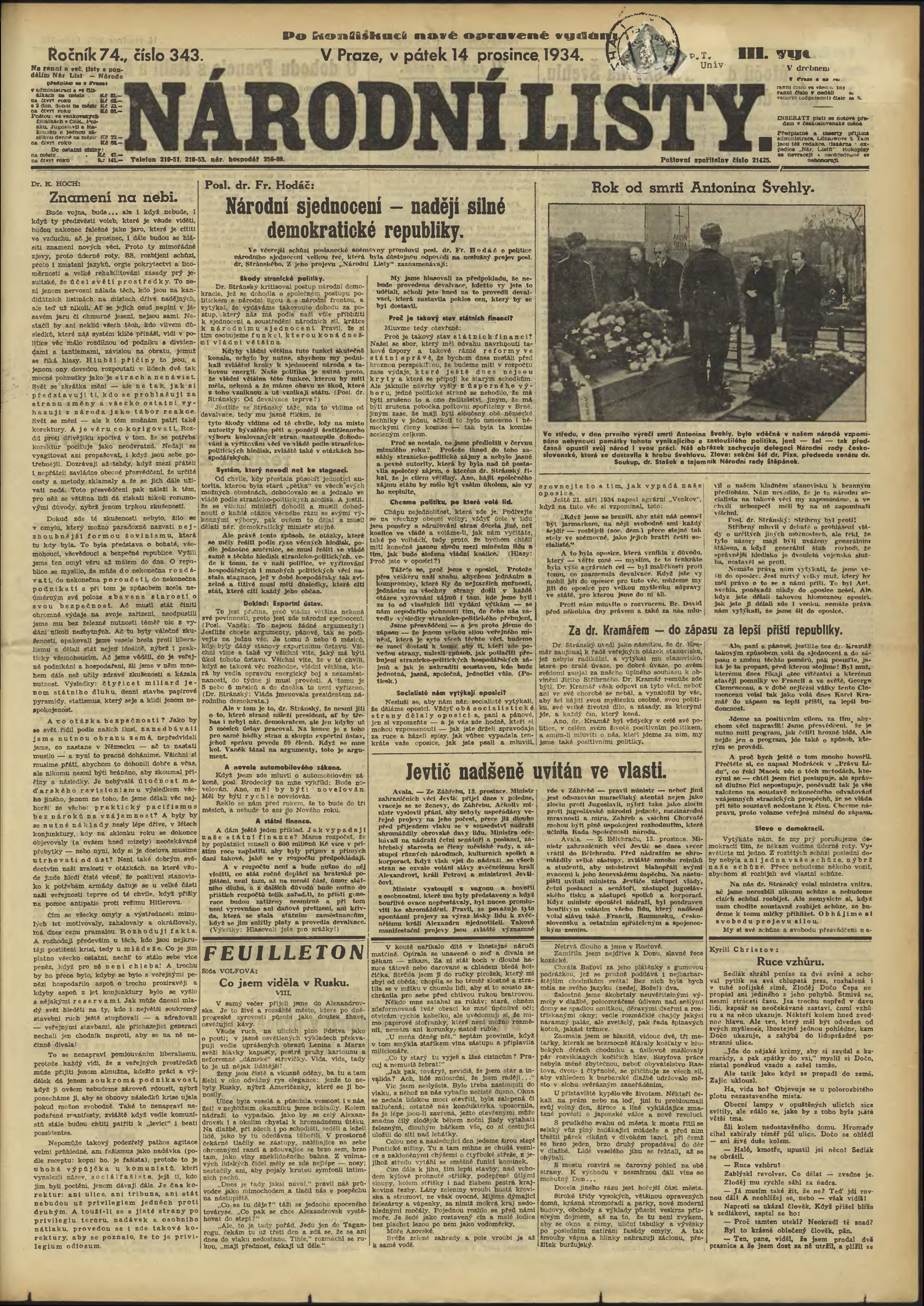 * Datum vydání výtisku: 14.12.1934 Číslo výtisku: 343 Poznámky k výtisku: 3. vydání; po konfiskaci nové opravené vydání;