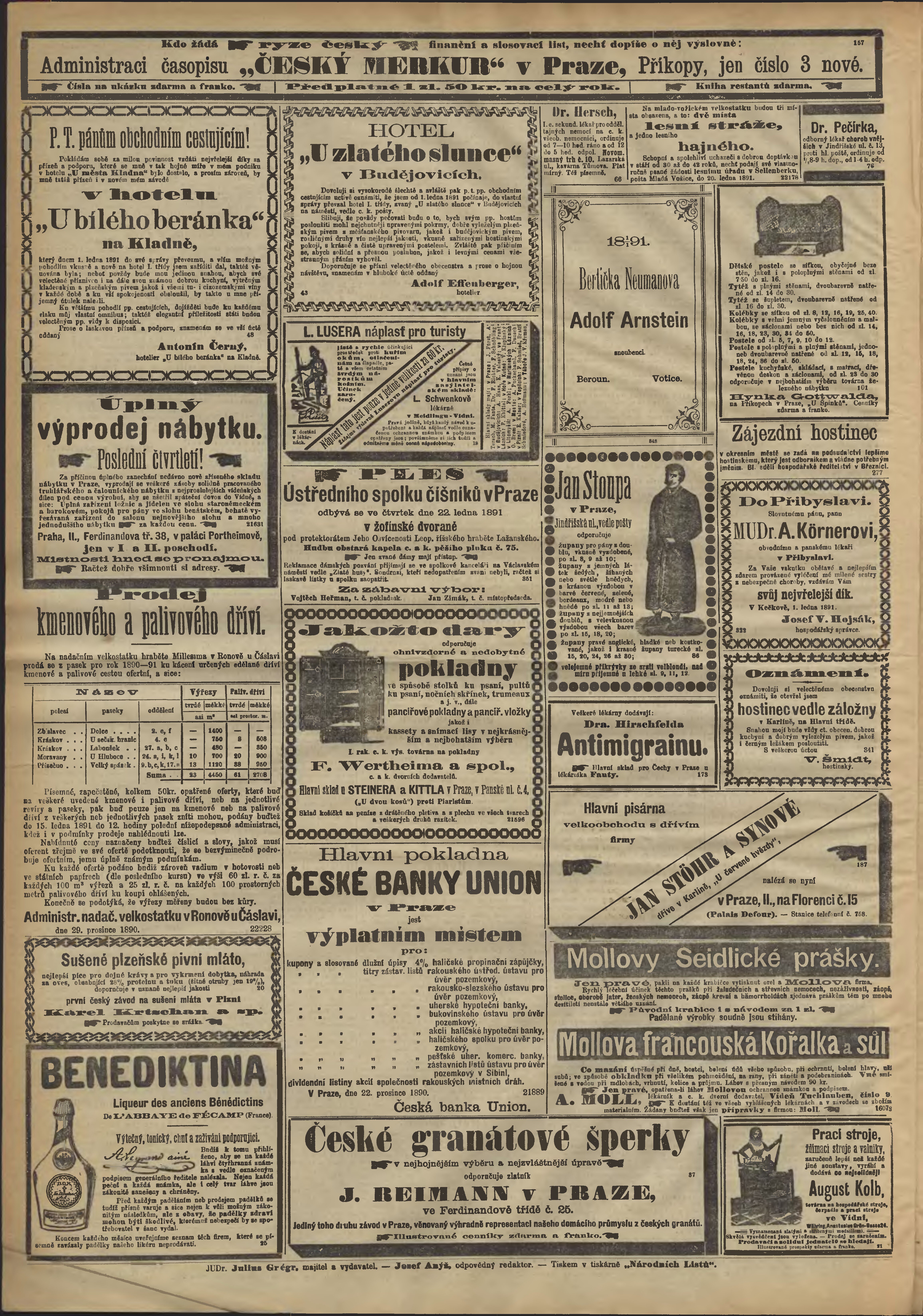 * Datum vydání výtisku: 3.1.1891 Číslo výtisku: 3