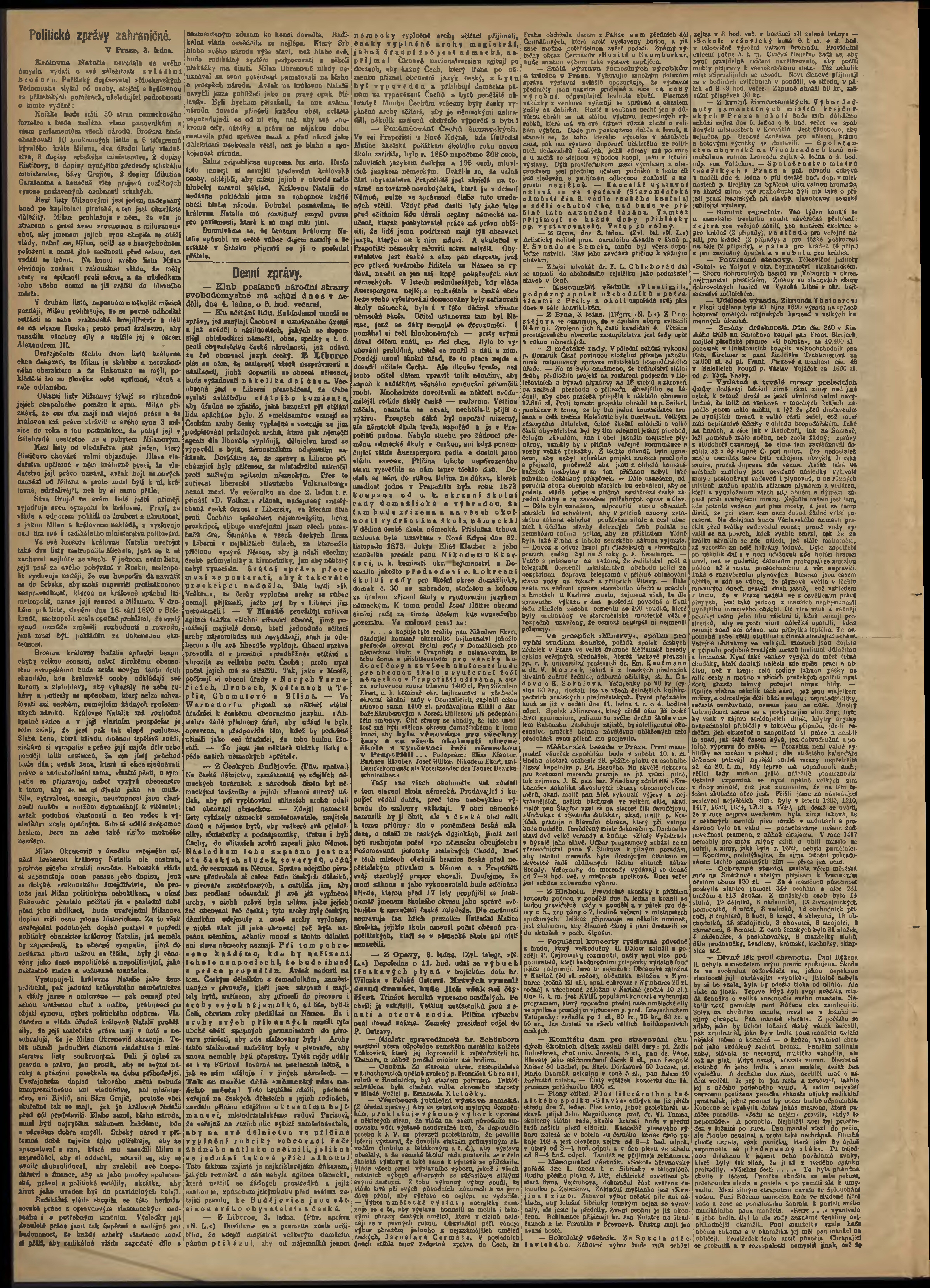 * Datum vydání výtisku: 4.1.1891 Číslo výtisku: 4