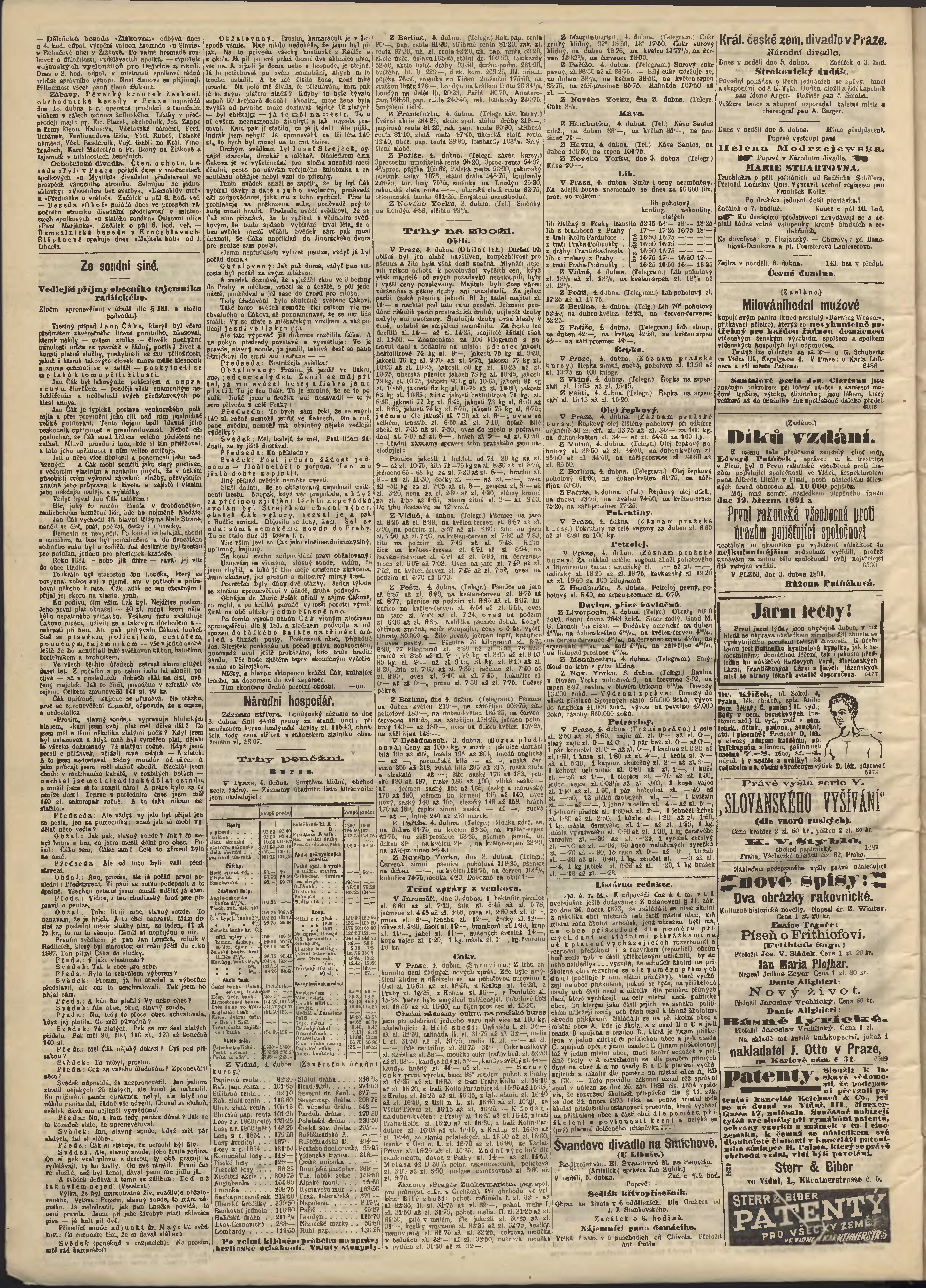 * Datum vydání výtisku: 5.4.1891 Číslo výtisku: 93