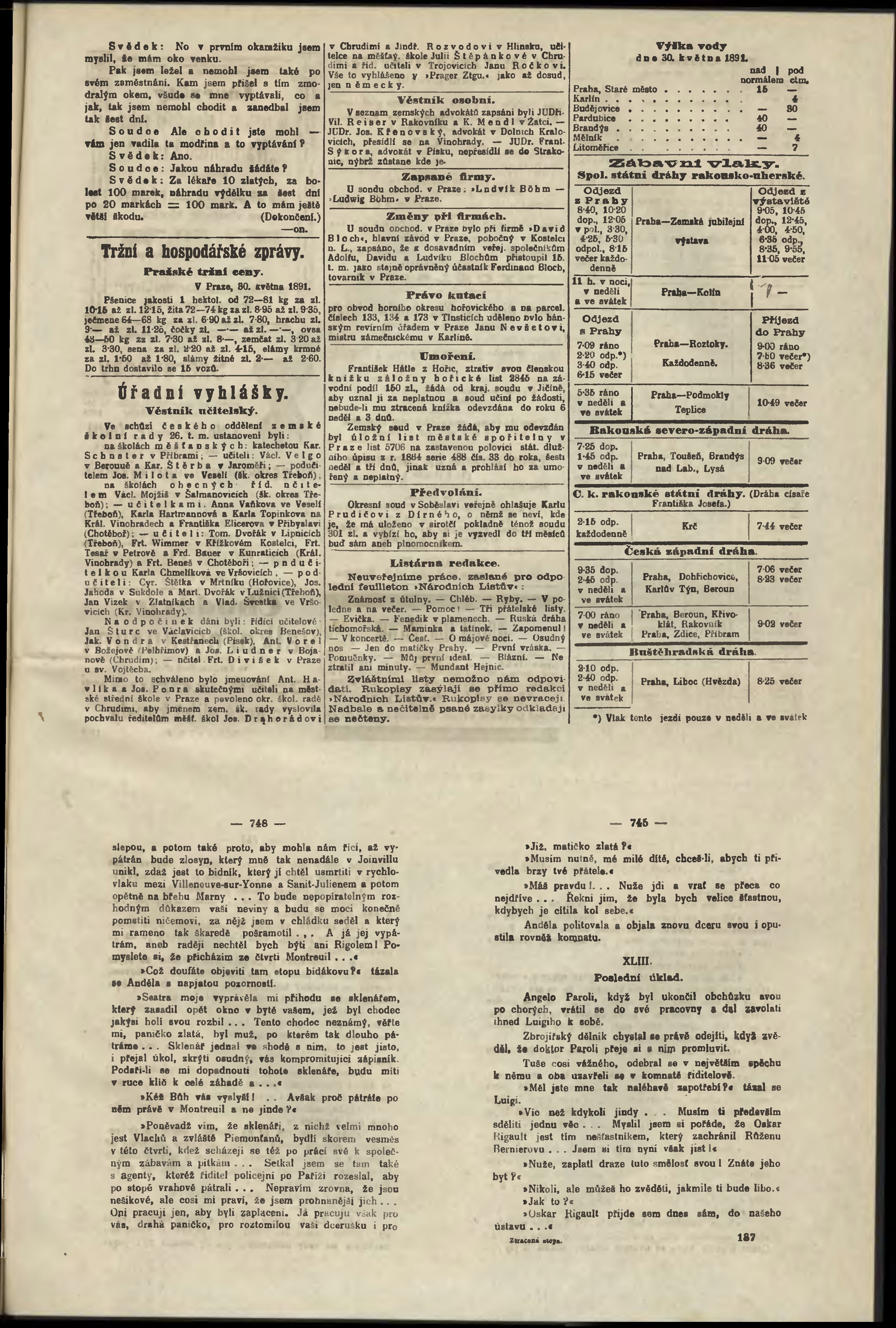 * Datum vydání výtisku: 30.5.1891 Číslo výtisku: 147 Poznámky k výtisku: odpolední vydání;
