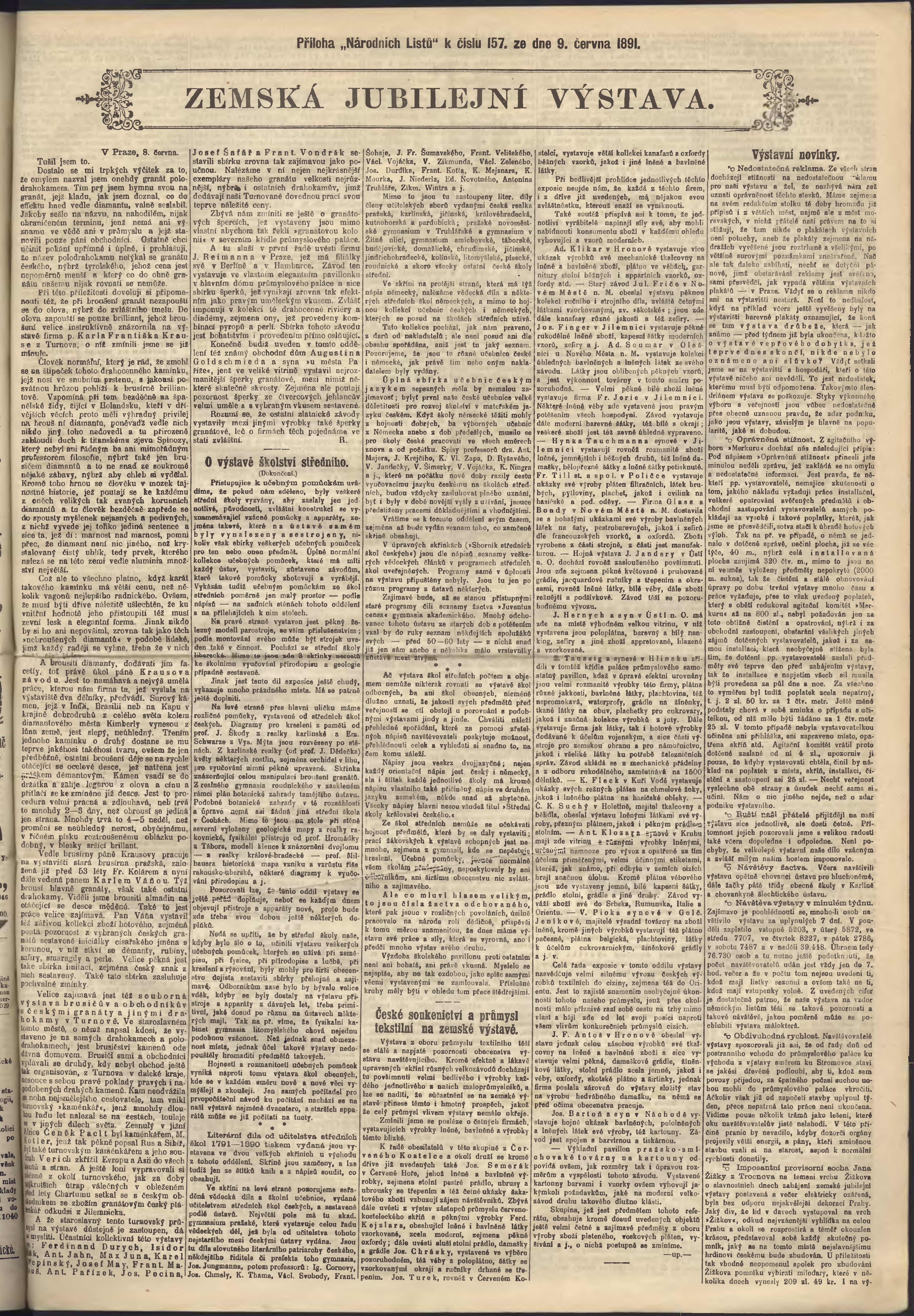 * Datum vydání výtisku: 9.6.1891 Číslo výtisku: 157