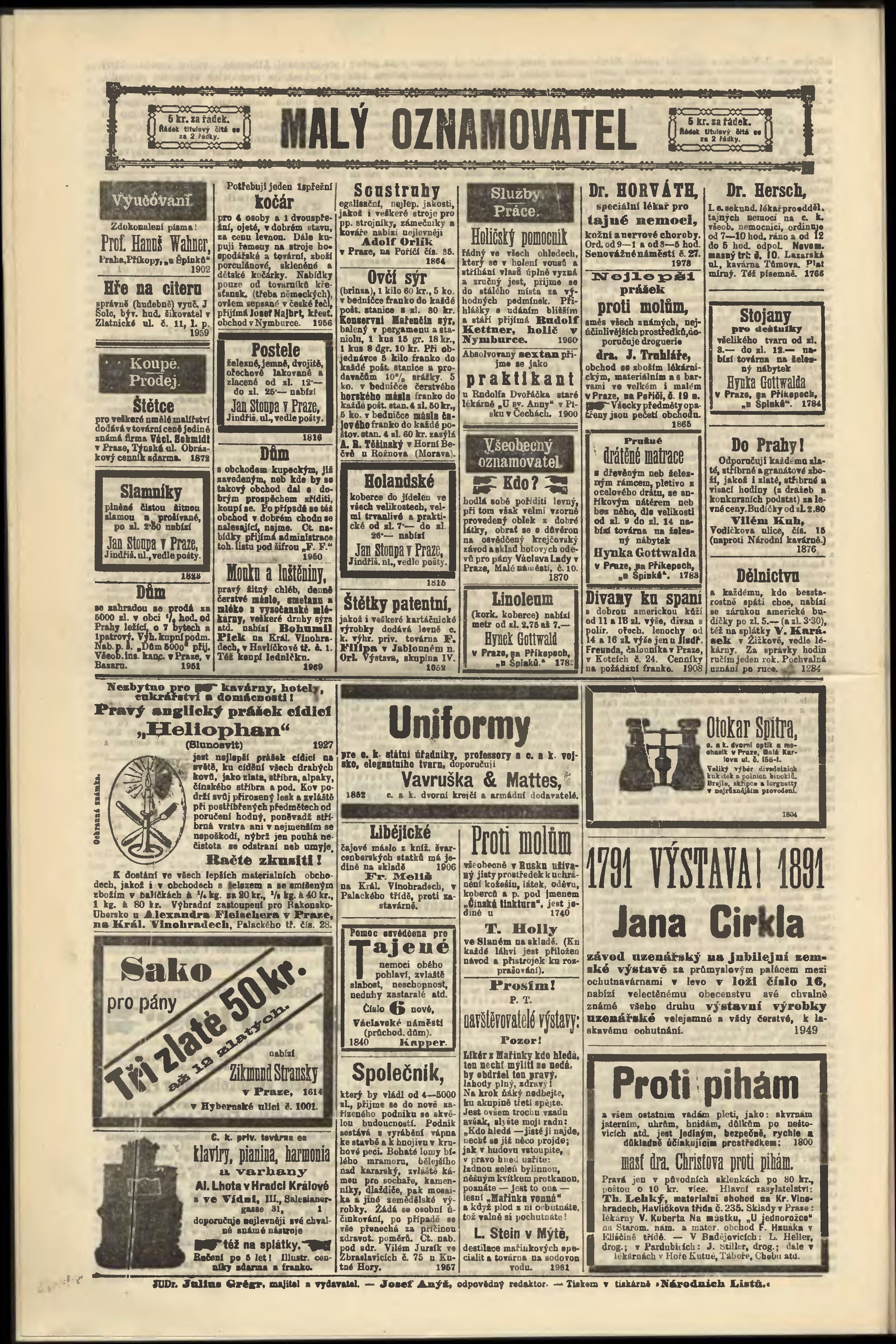 * Datum vydání výtisku: 10.6.1891 Číslo výtisku: 158 Poznámky k výtisku: odpolední vydání;