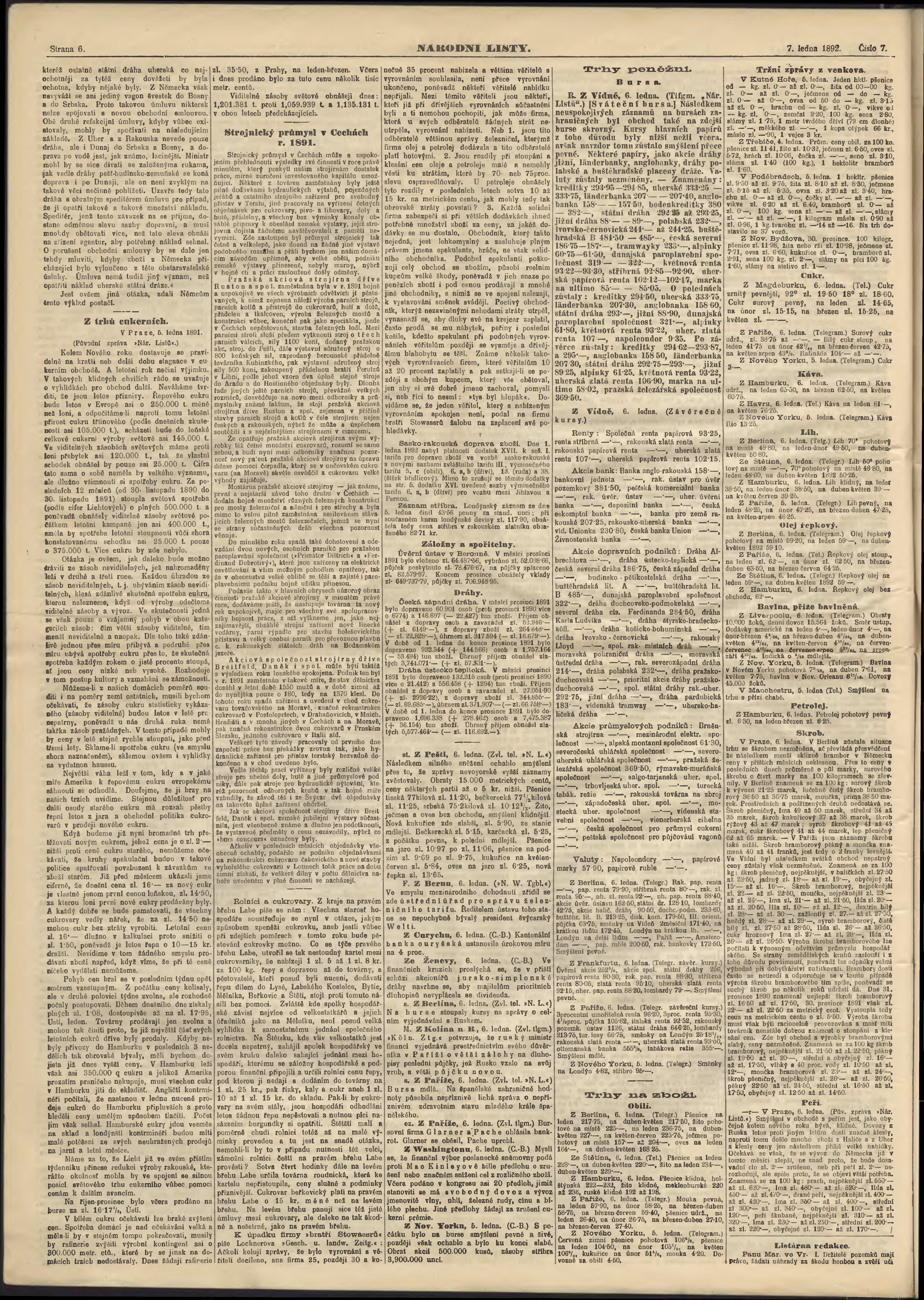 * Datum vydání výtisku: 7.1.1892 Číslo výtisku: 7