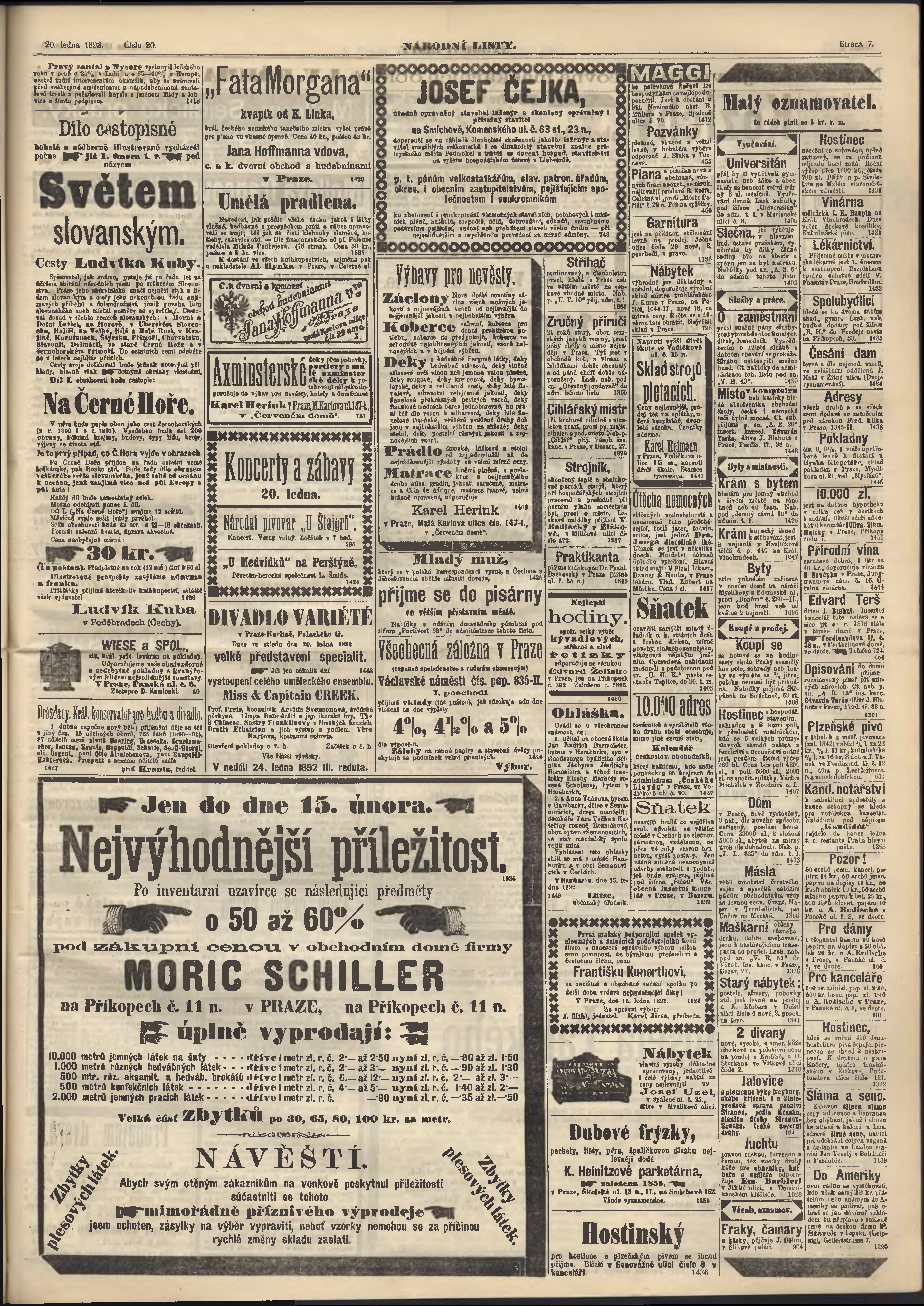 * Datum vydání výtisku: 20.1.1892 Číslo výtisku: 20