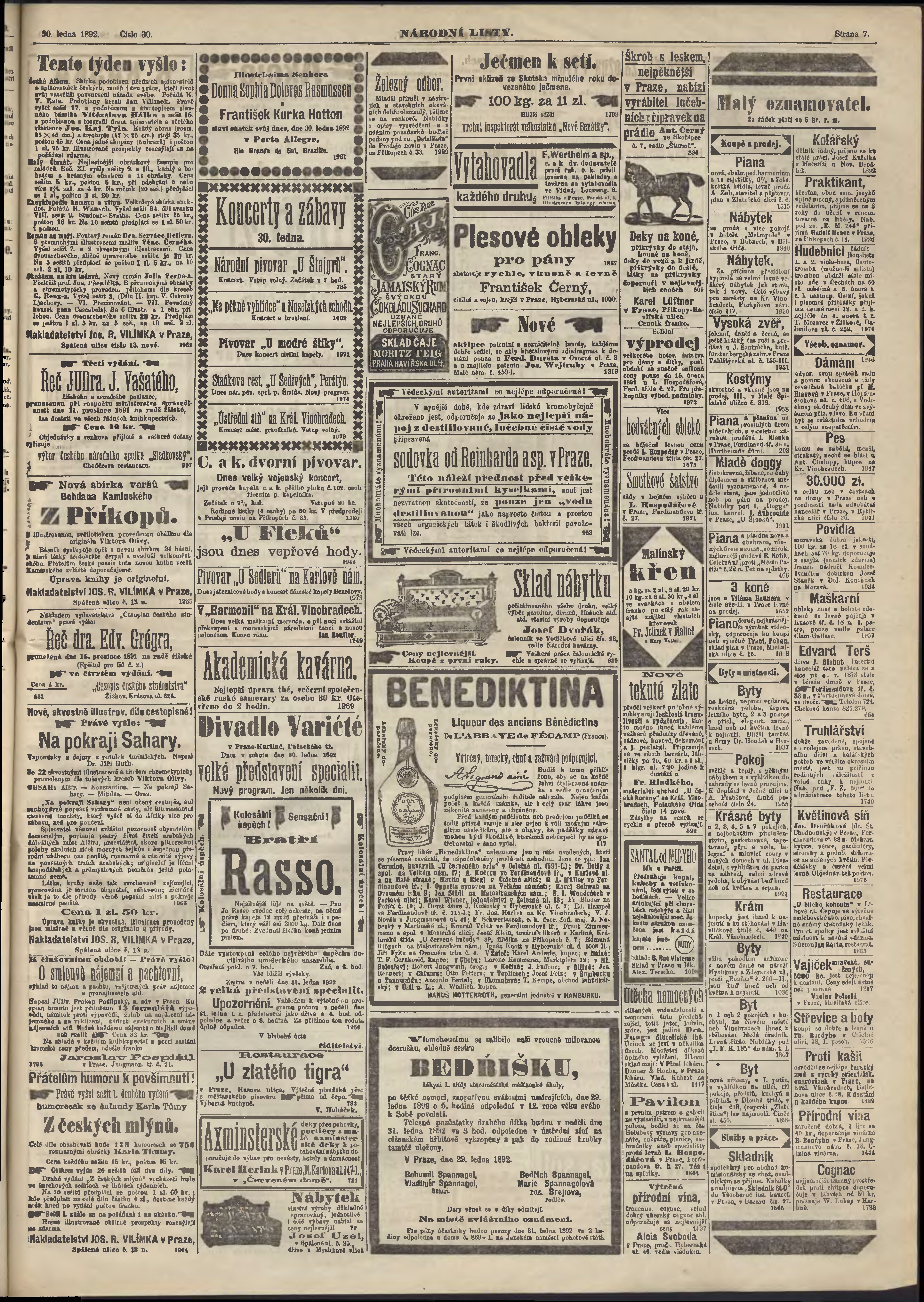 * Datum vydání výtisku: 30.1.1892 Číslo výtisku: 30