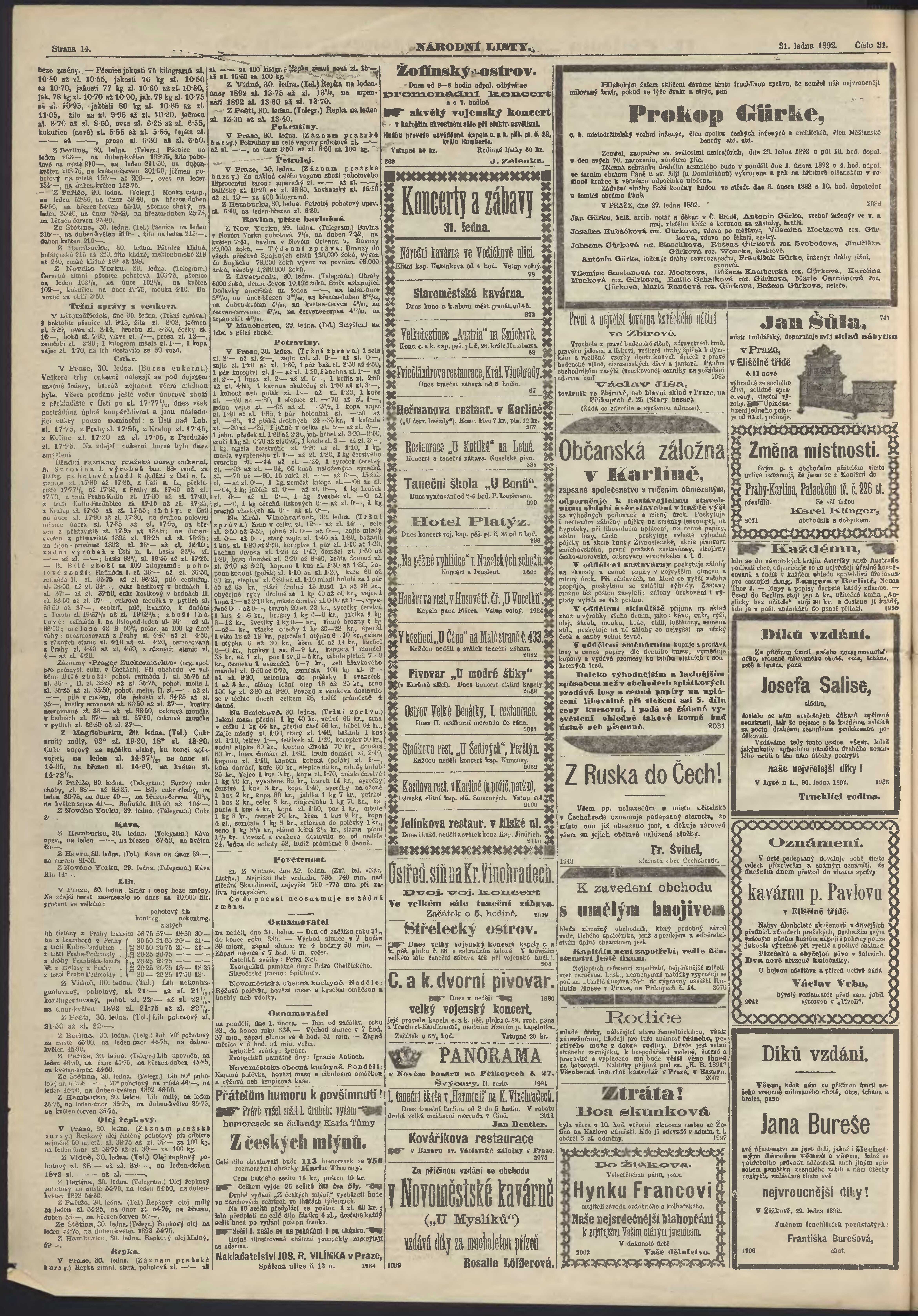 * Datum vydání výtisku: 31.1.1892 Číslo výtisku: 31