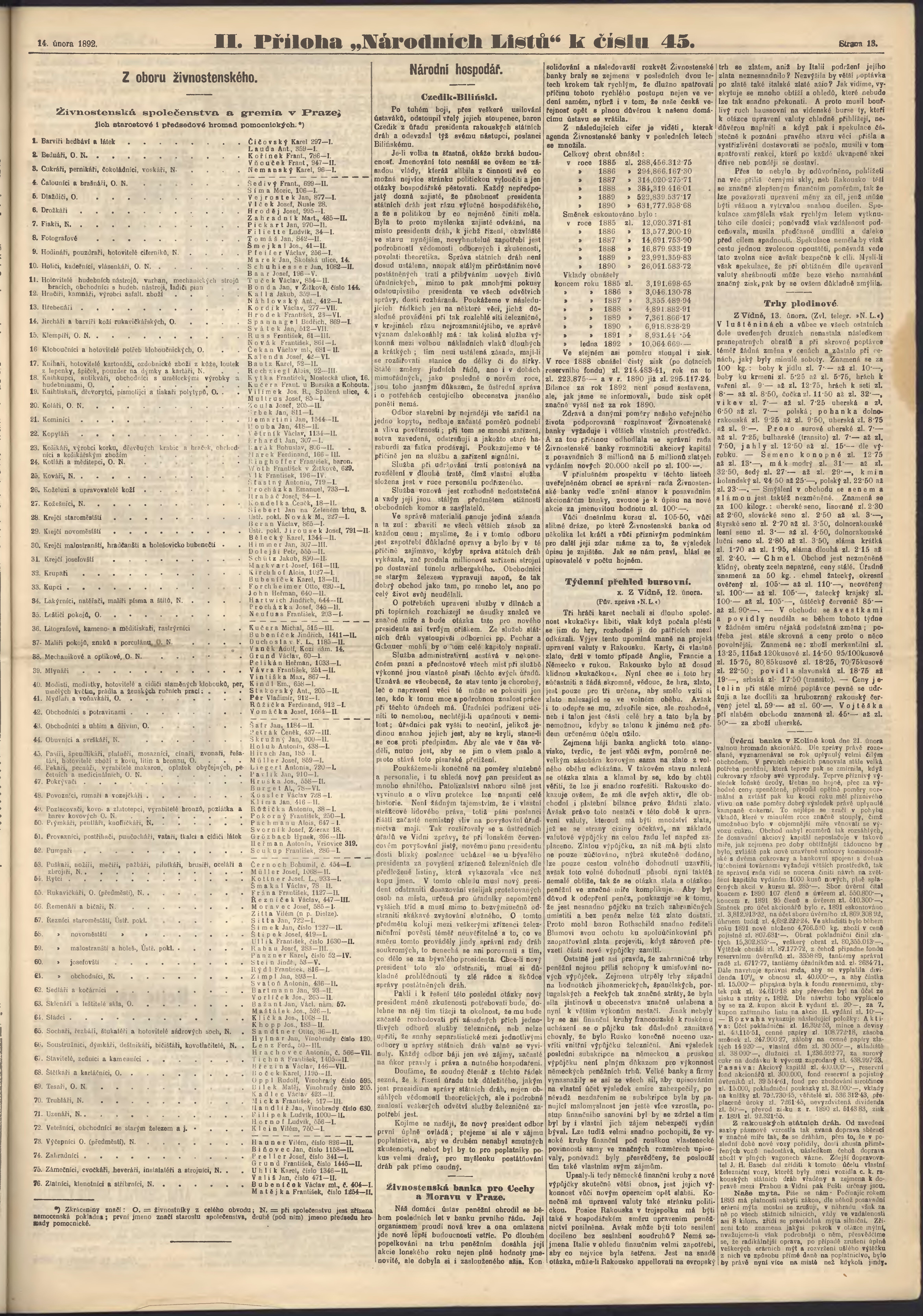 * Datum vydání výtisku: 14.2.1892 Číslo výtisku: 45