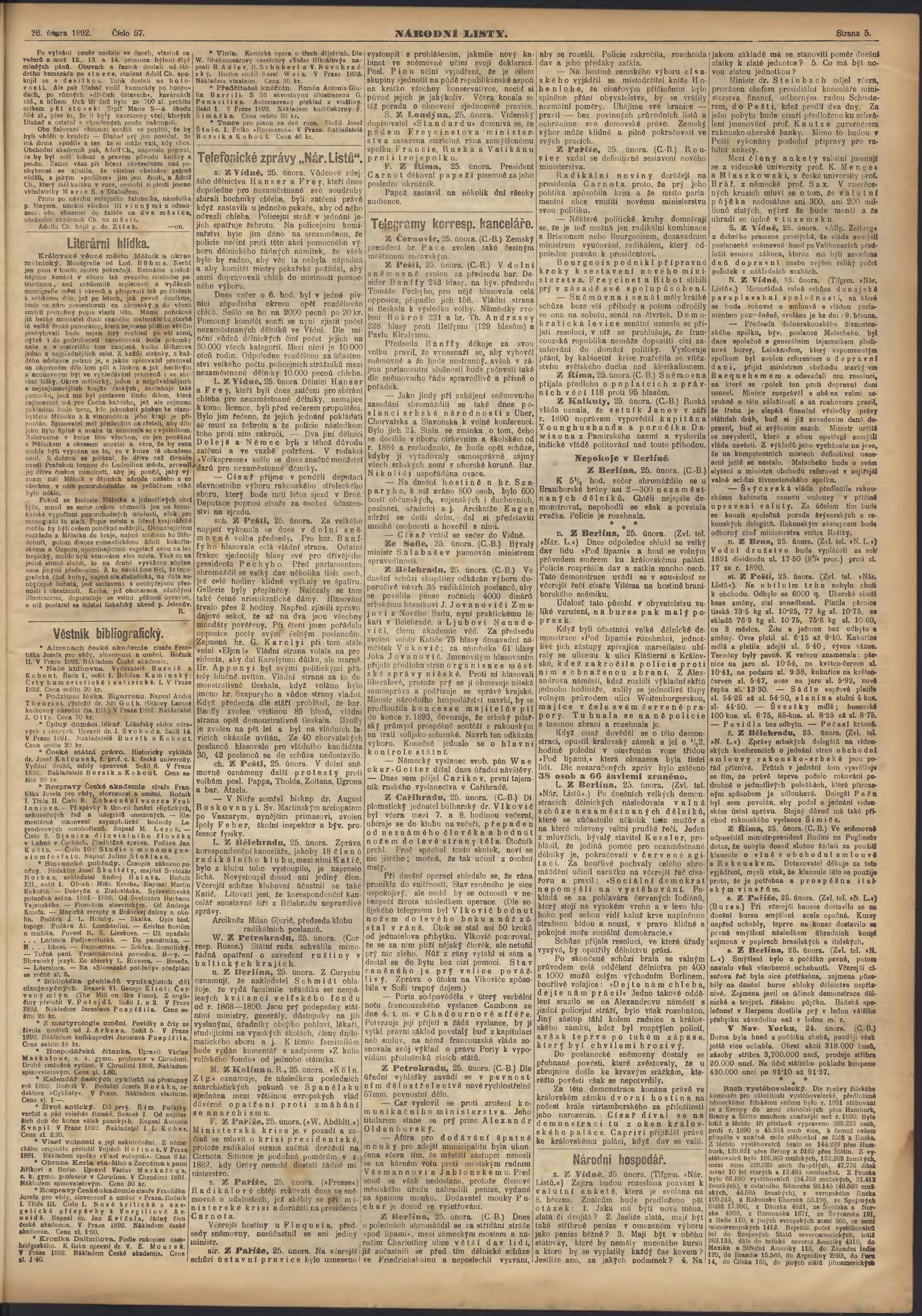 * Datum vydání výtisku: 26.2.1892 Číslo výtisku: 57