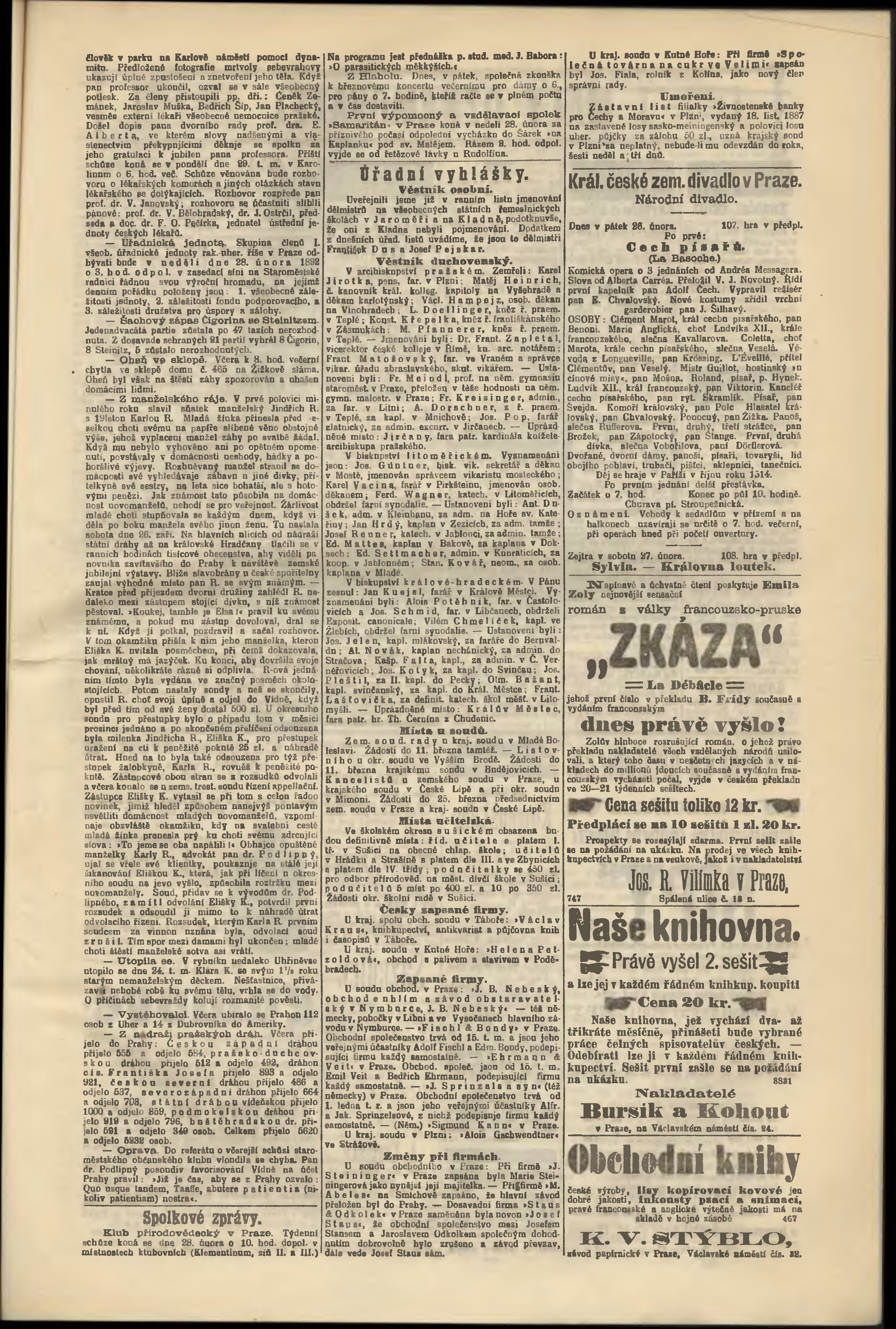 * Datum vydání výtisku: 26.2.1892 Číslo výtisku: 57 Poznámky k výtisku: odpolední vydání;