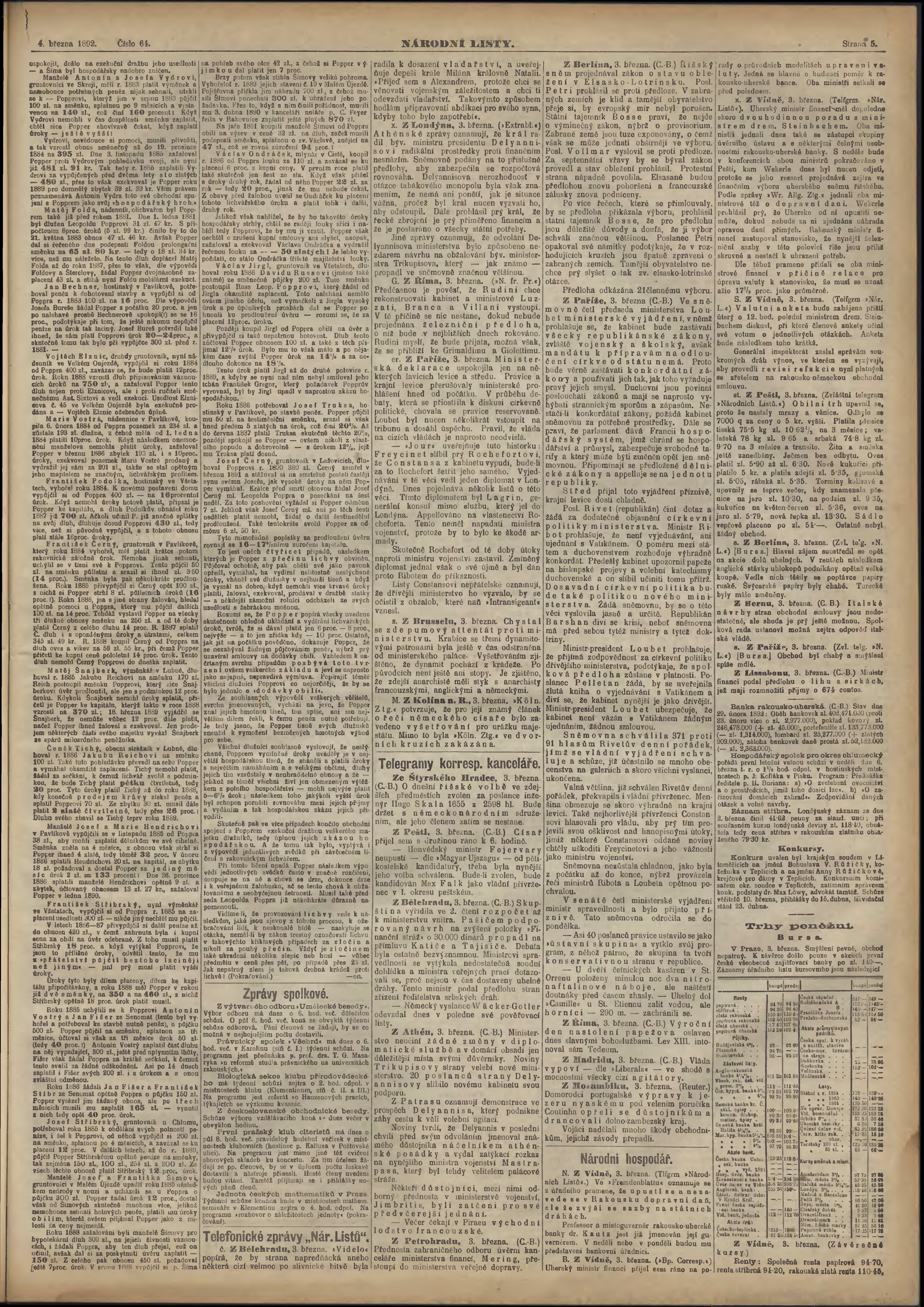 * Datum vydání výtisku: 4.3.1892 Číslo výtisku: 64