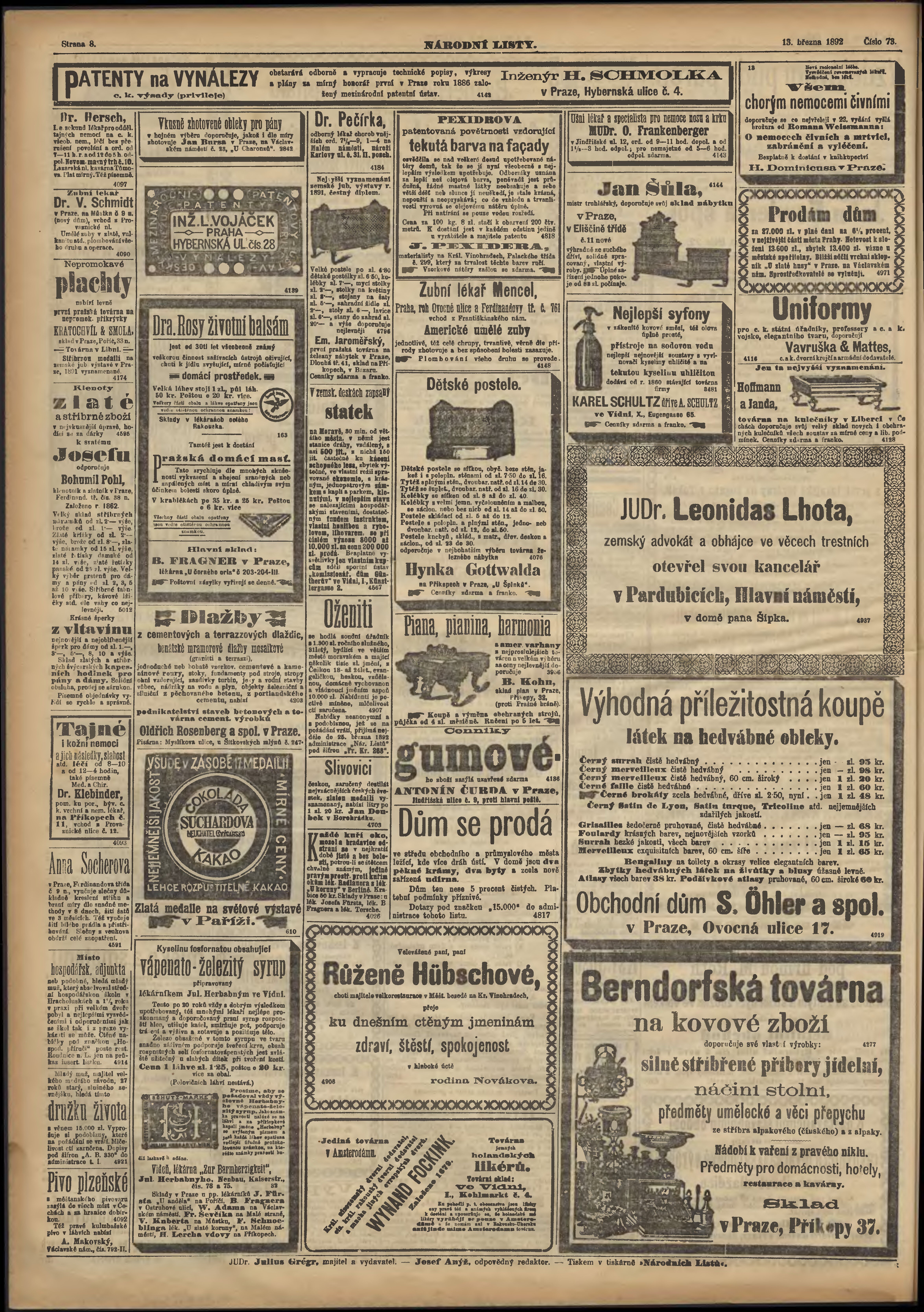 * Datum vydání výtisku: 13.3.1892 Číslo výtisku: 73
