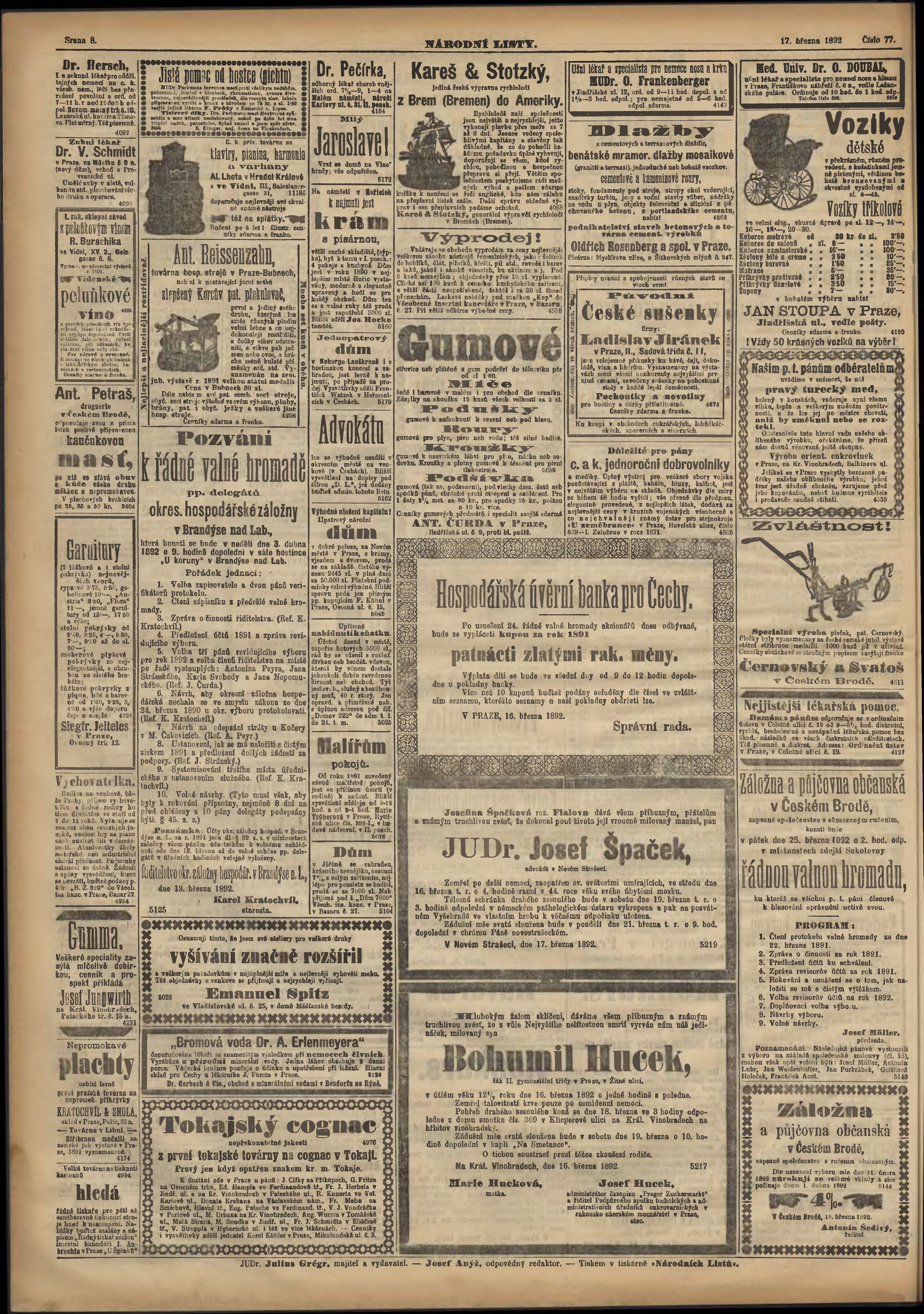 * Datum vydání výtisku: 17.3.1892 Číslo výtisku: 77