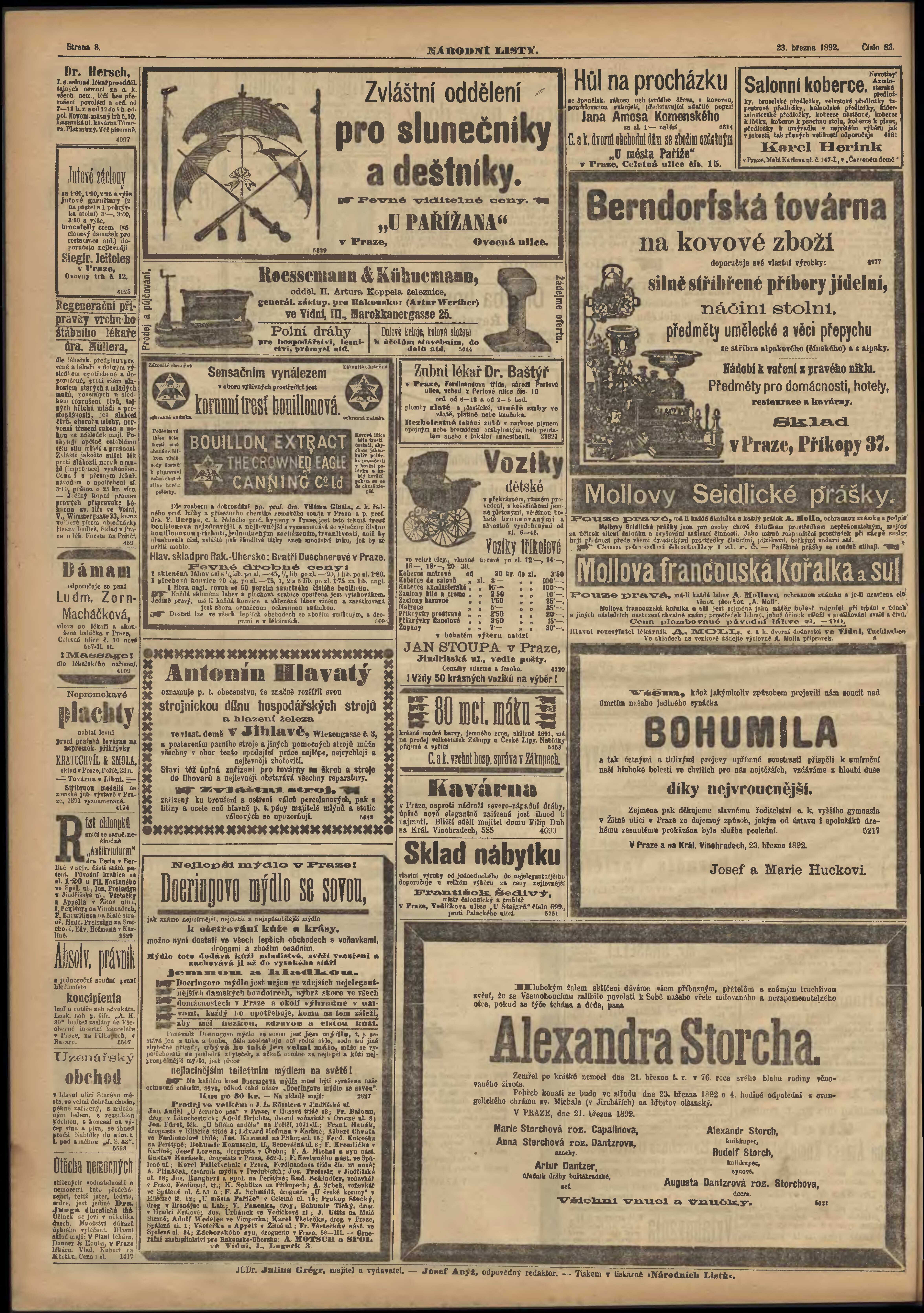 * Datum vydání výtisku: 23.3.1892 Číslo výtisku: 83