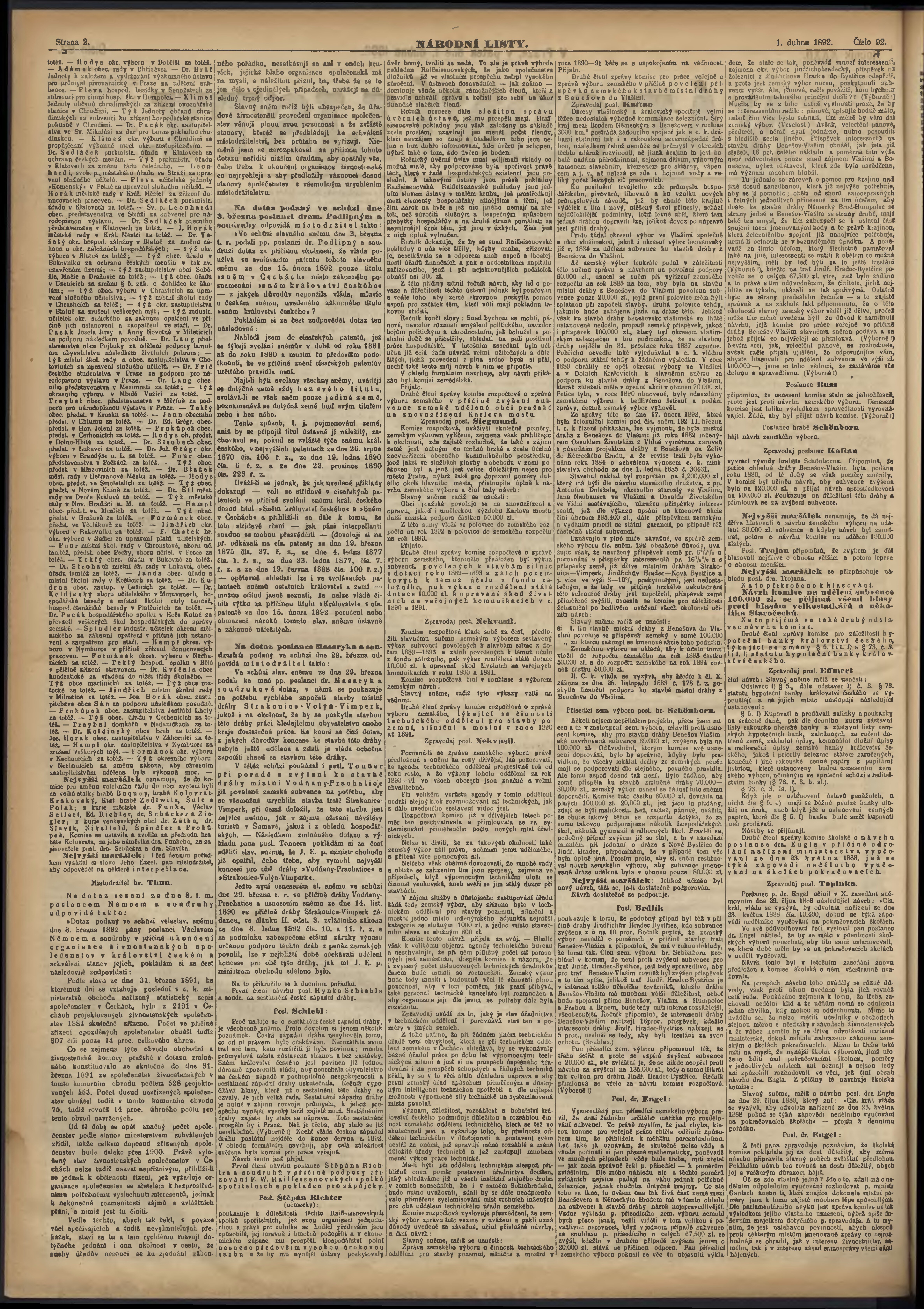 * Datum vydání výtisku: 1.4.1892 Číslo výtisku: 92 Poznámky k výtisku: s. 10 není k dispozici;