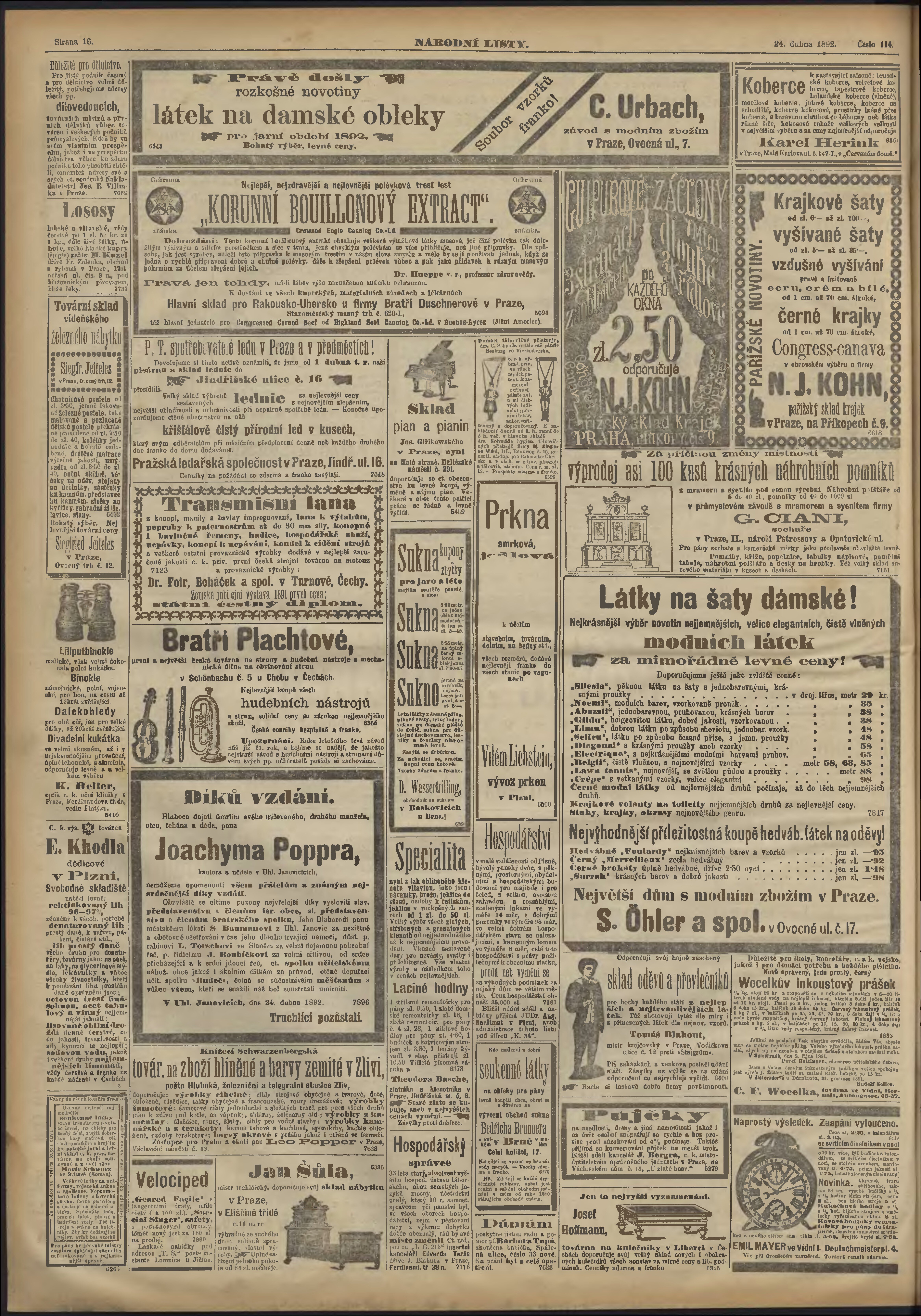 * Datum vydání výtisku: 24.4.1892 Číslo výtisku: 114