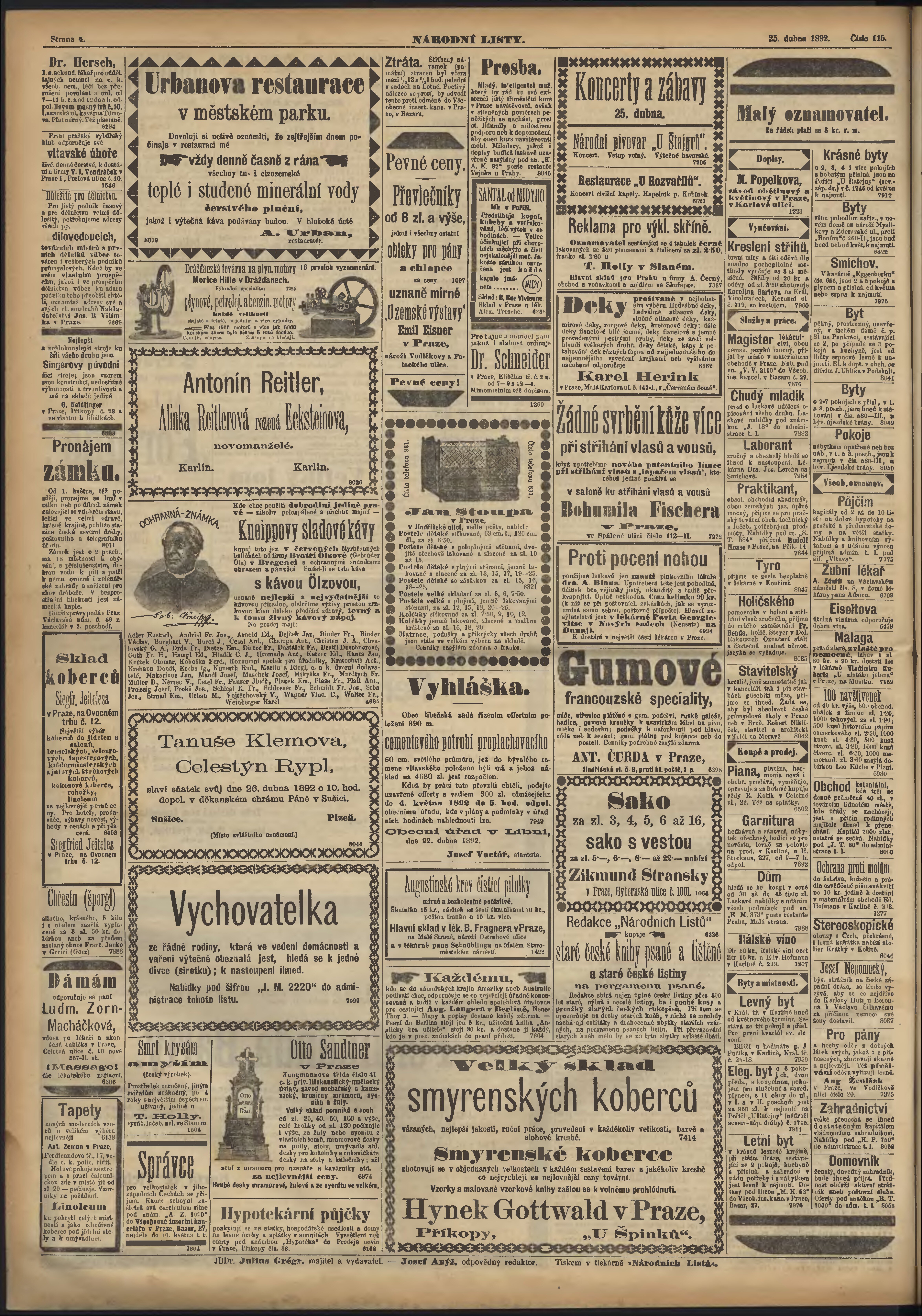 * Datum vydání výtisku: 25.4.1892 Číslo výtisku: 115