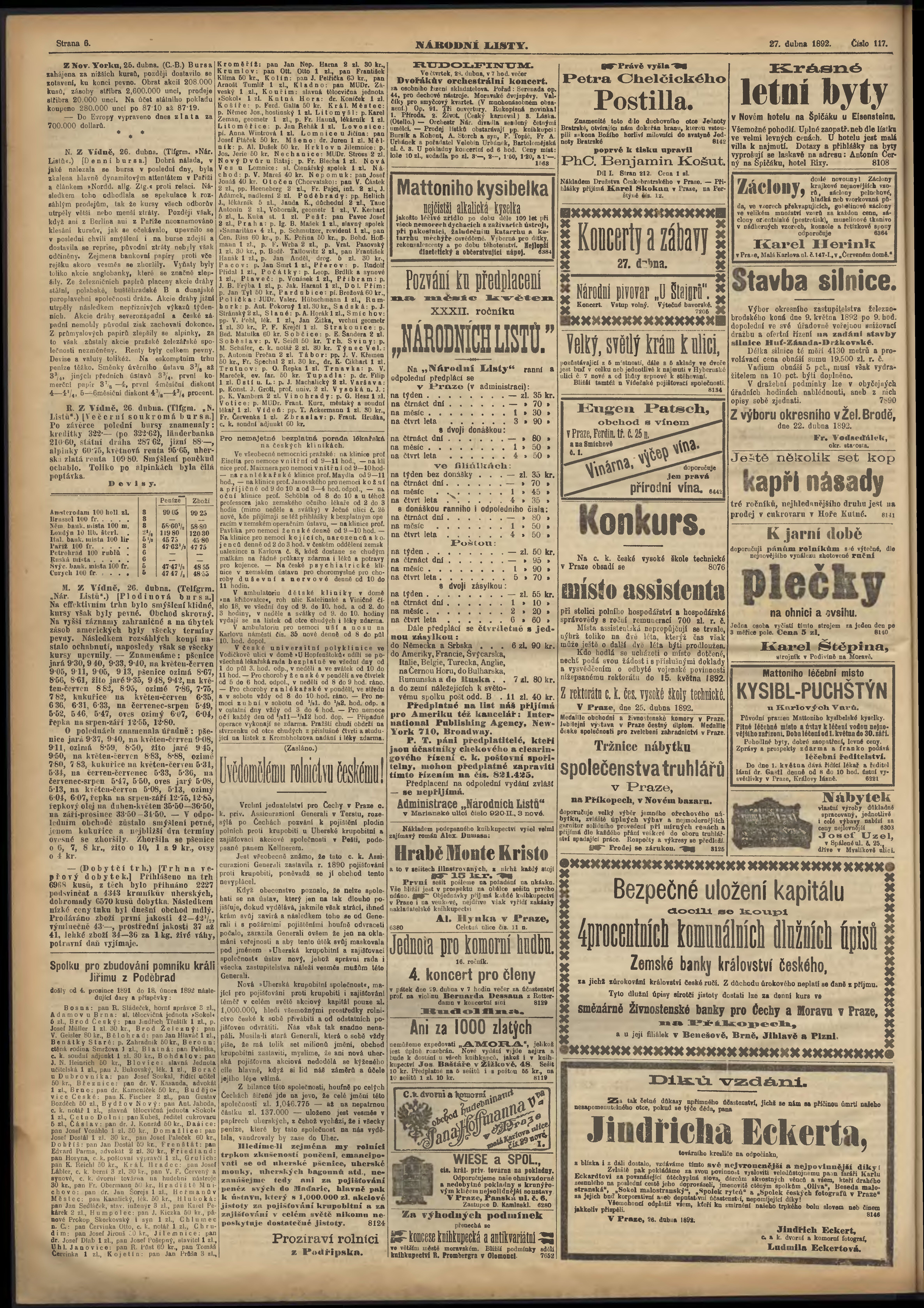 * Datum vydání výtisku: 27.4.1892 Číslo výtisku: 117