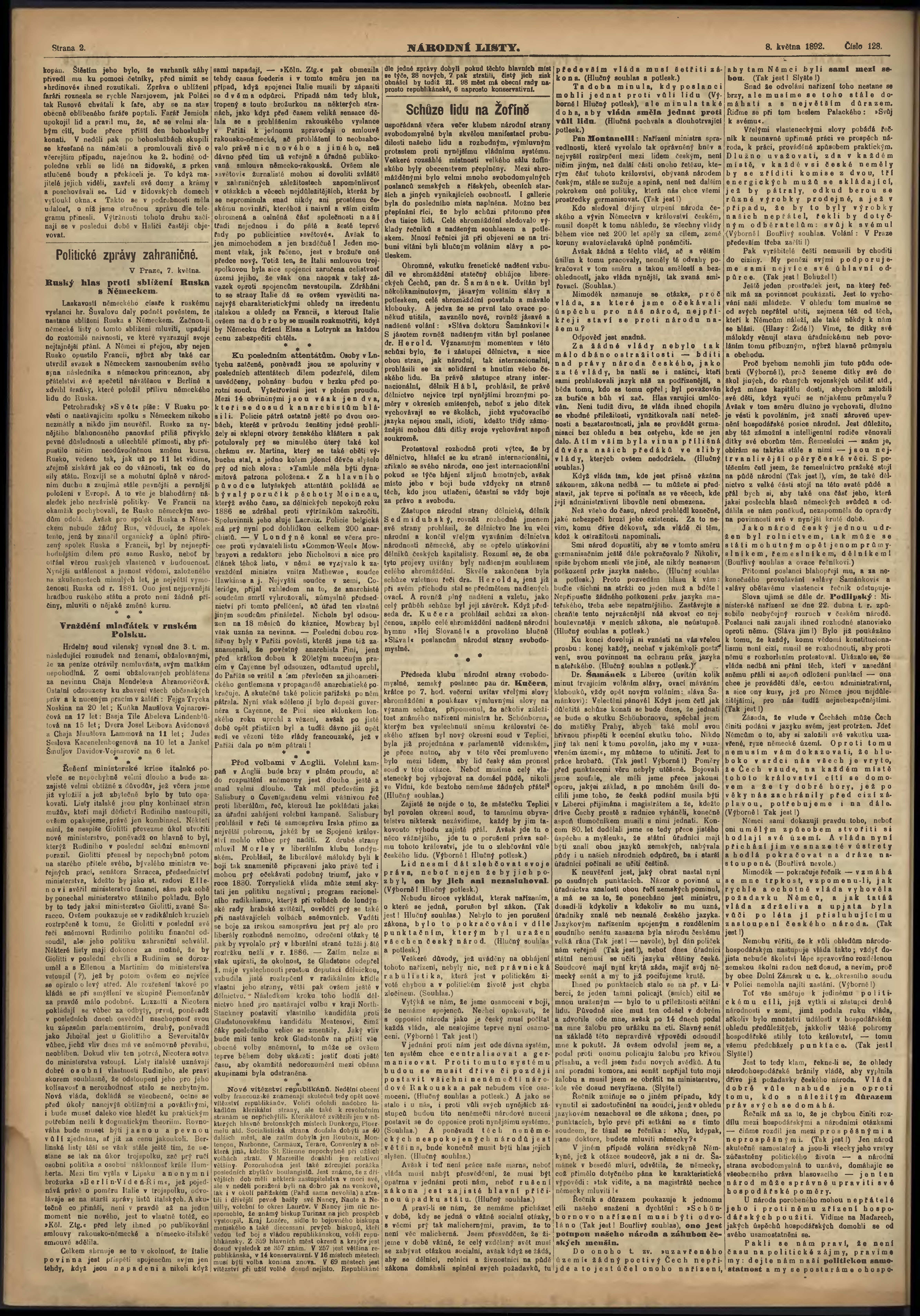 * Datum vydání výtisku: 8.5.1892 Číslo výtisku: 128