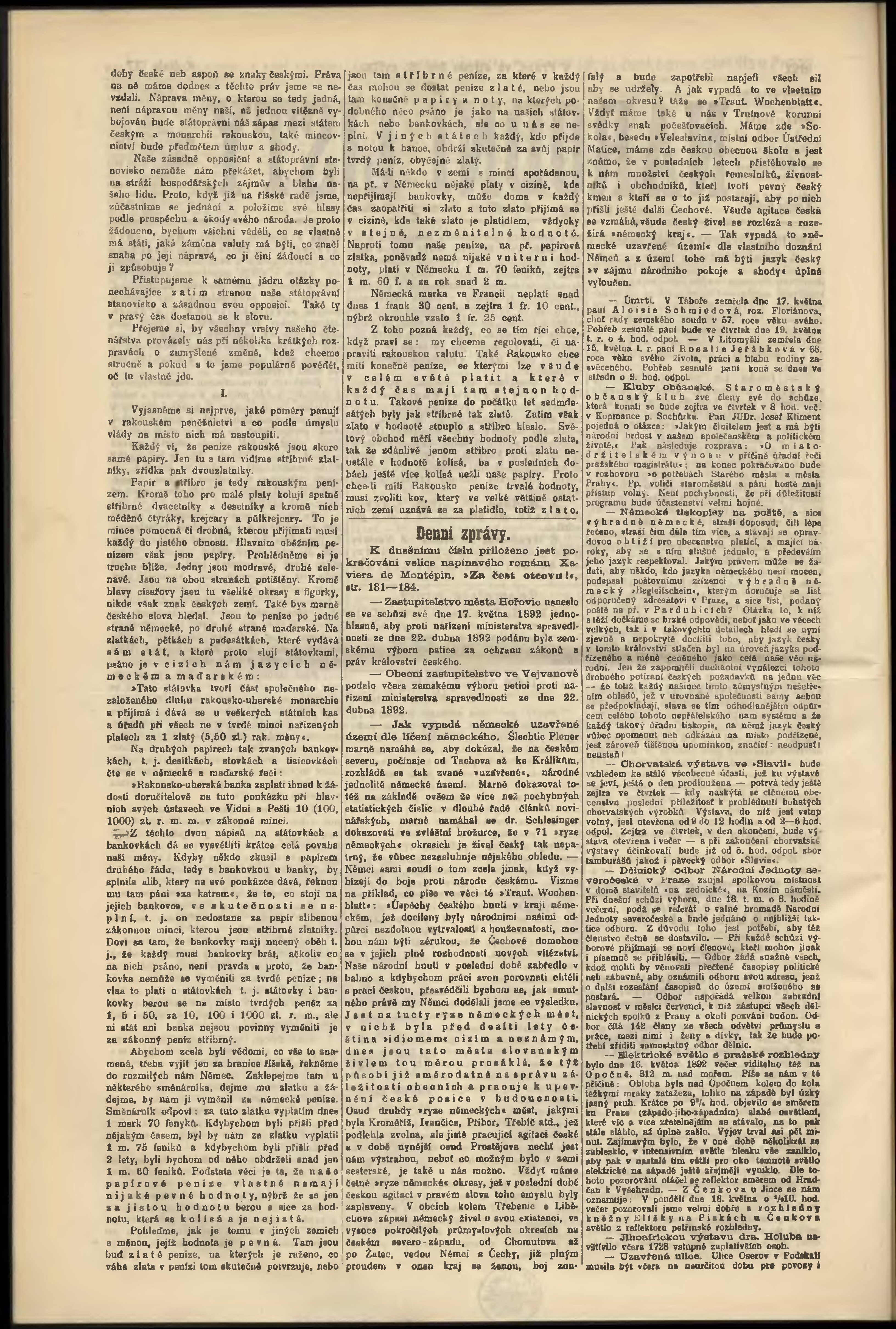 * Datum vydání výtisku: 18.5.1892 Číslo výtisku: 137 Poznámky k výtisku: odpolední vydání;