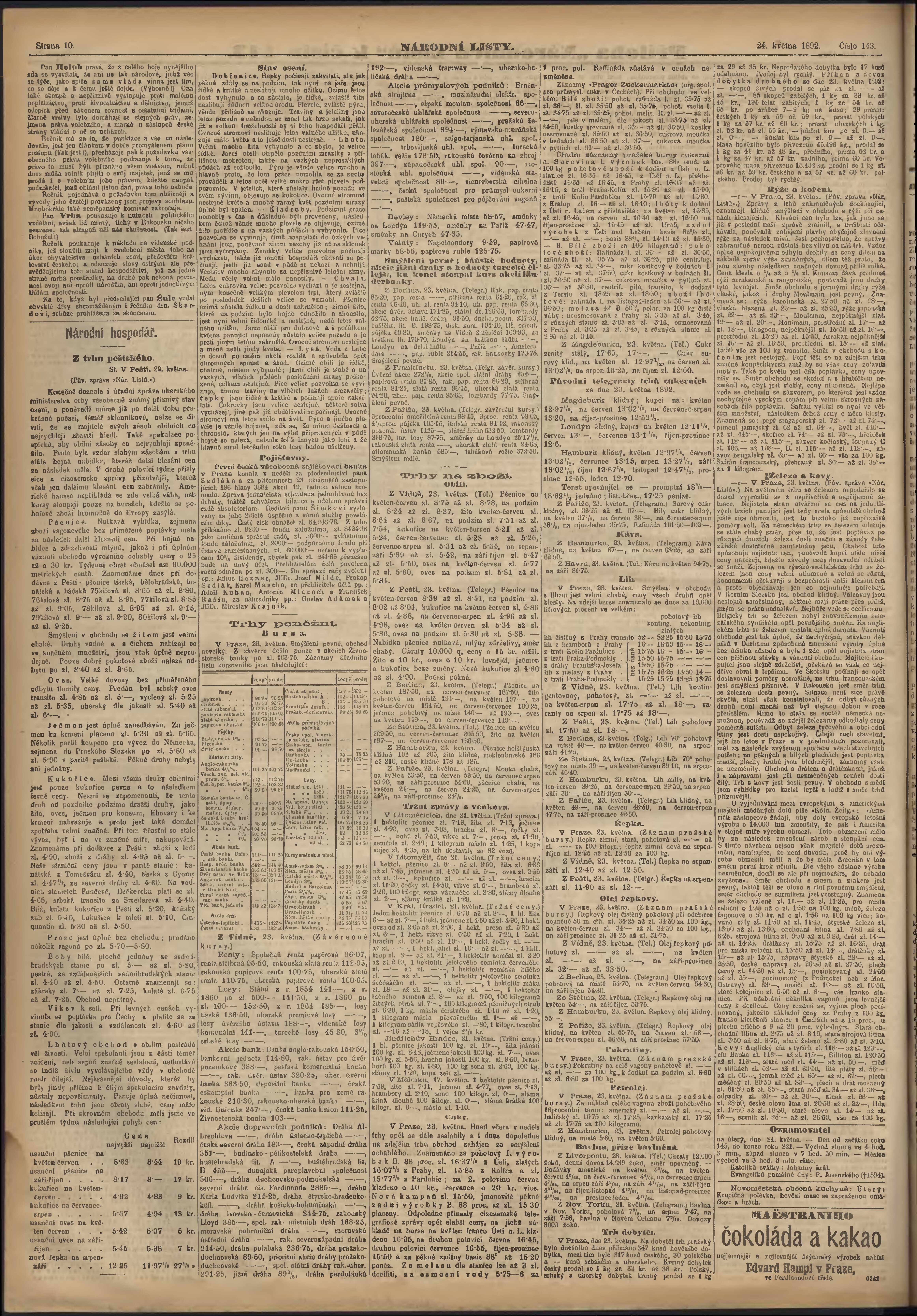 * Datum vydání výtisku: 24.5.1892 Číslo výtisku: 143