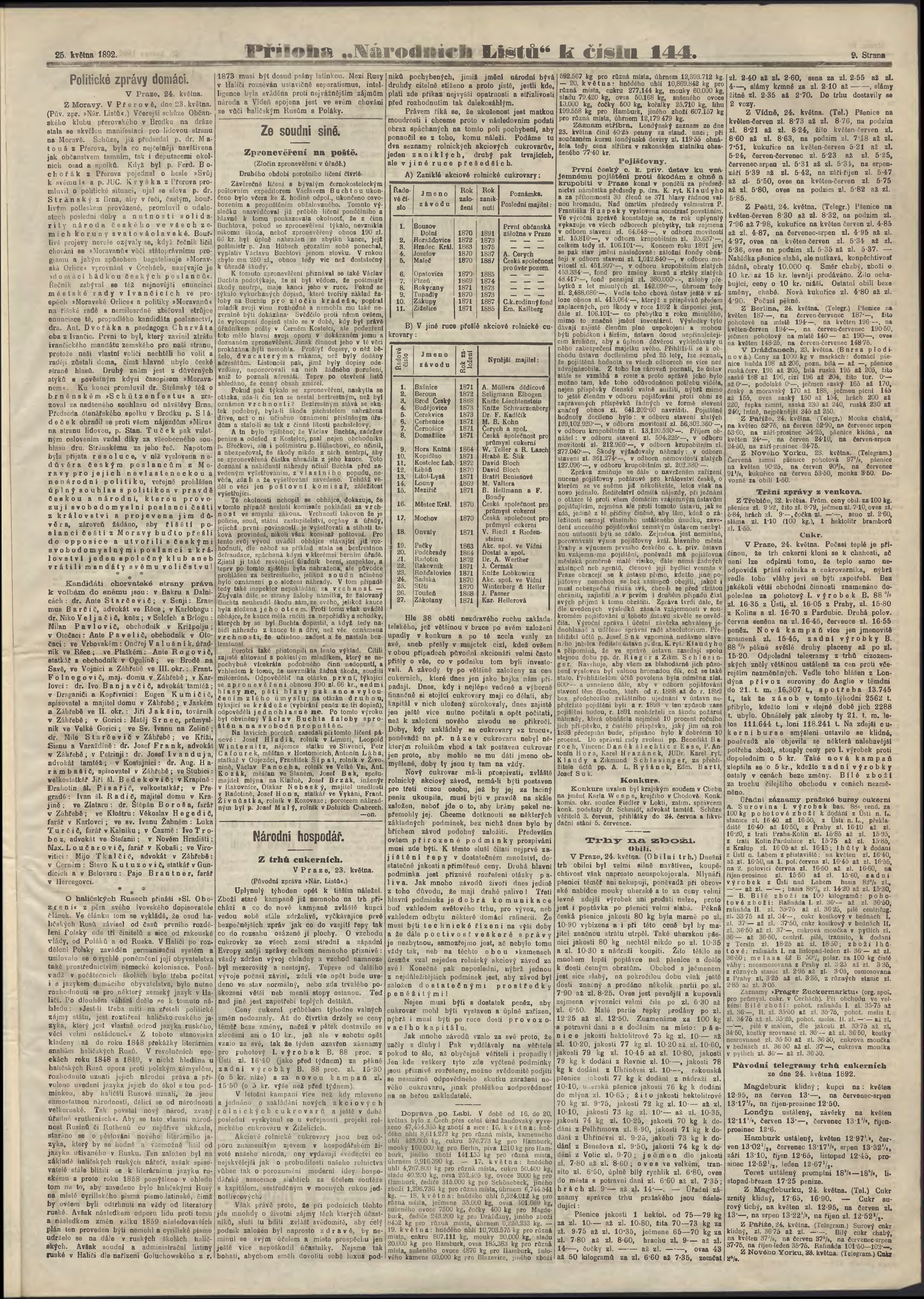 * Datum vydání výtisku: 25.5.1892 Číslo výtisku: 144