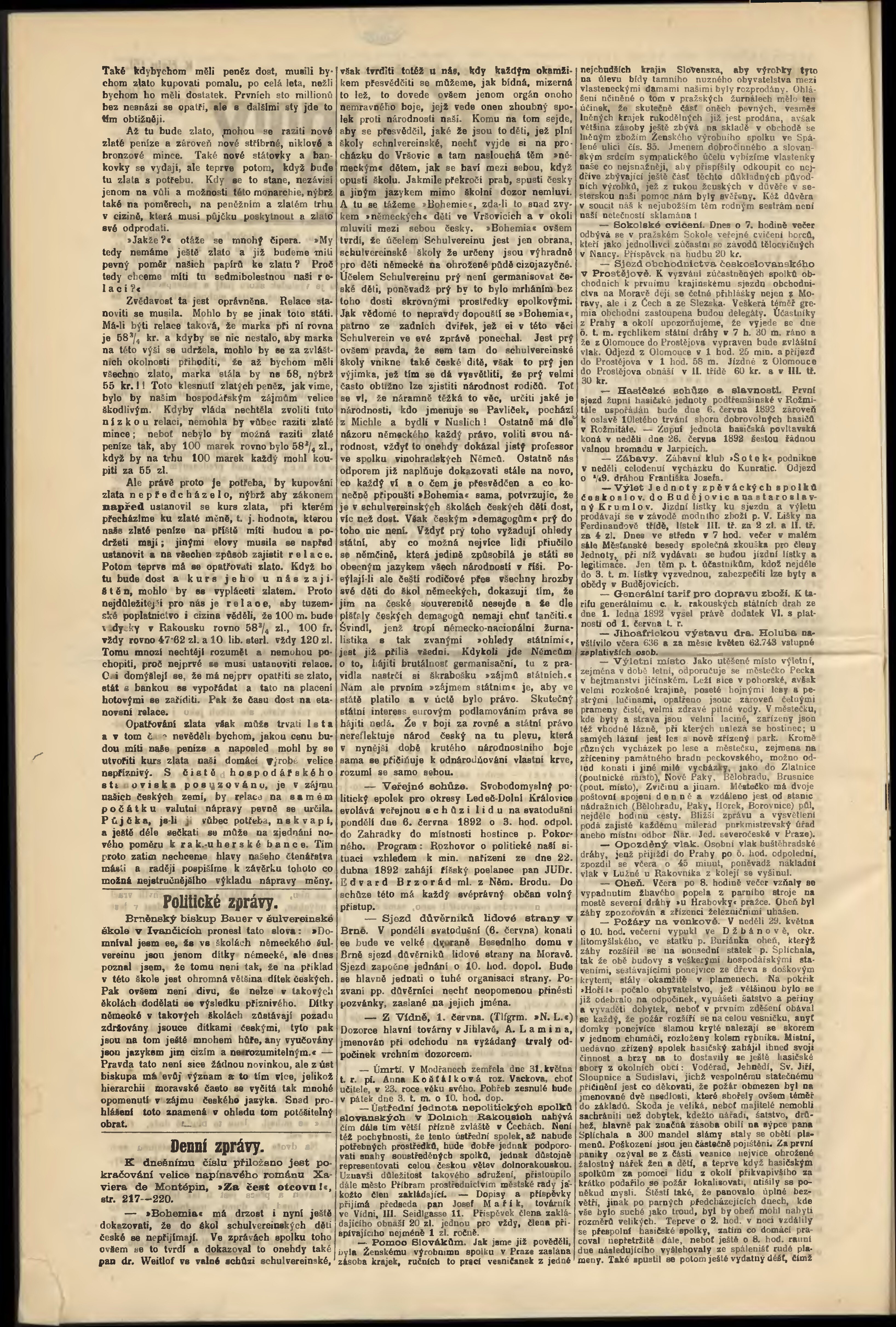 * Datum vydání výtisku: 1.6.1892 Číslo výtisku: 151 Poznámky k výtisku: odpolední vydání;